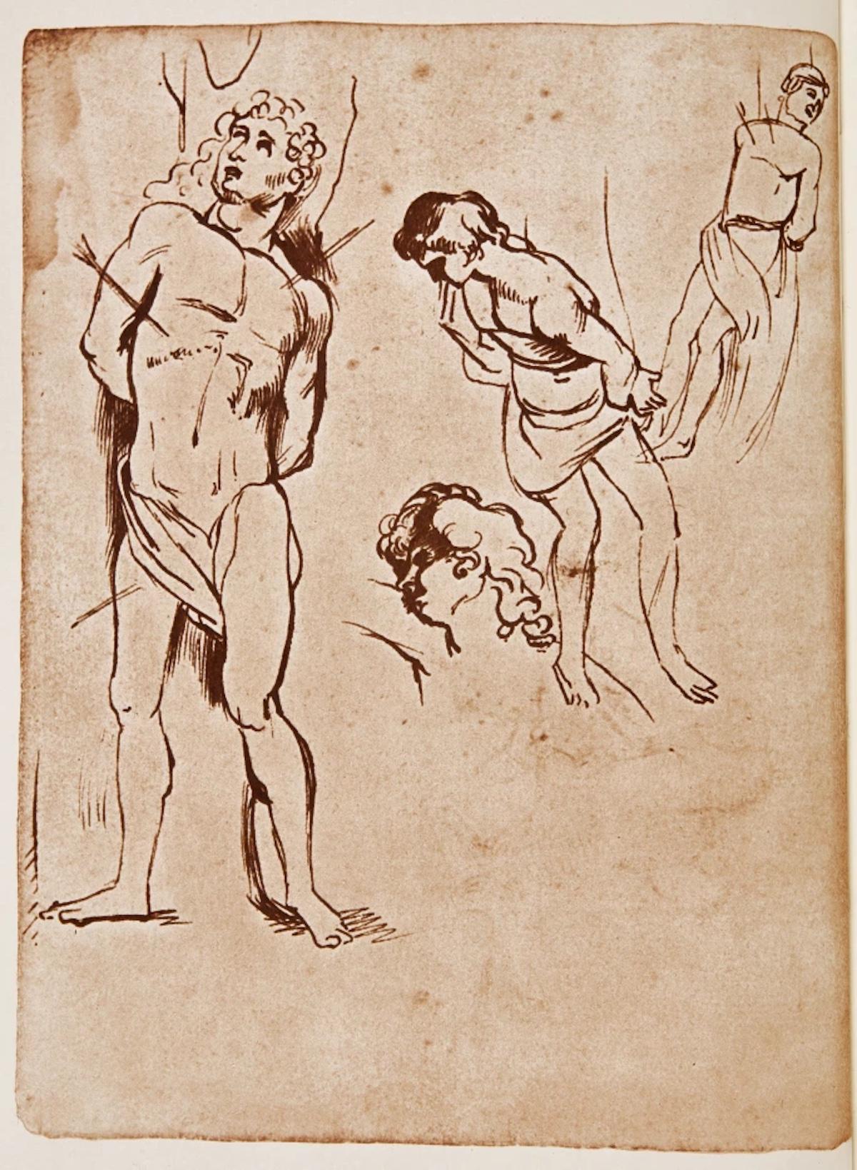 FIG. 7 ANTHONY VAN DYCK, SHEET OF FOUR STUDIES RELATING TO A MARTYRDOM OF SAINT SEBASTIAN, FOL. 19 VERSO IN SKETCHBOOK. THE BRITISH MUSEUM, LONDON