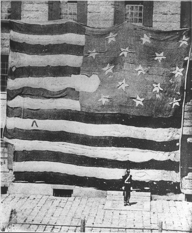 First known photograph of the Star-Spangled Banner, taken at the Boston Navy Yard, June 21, 1873.