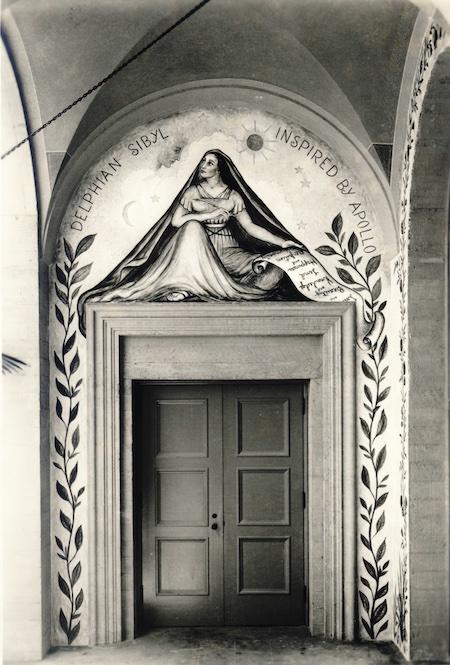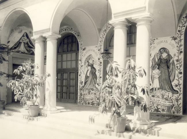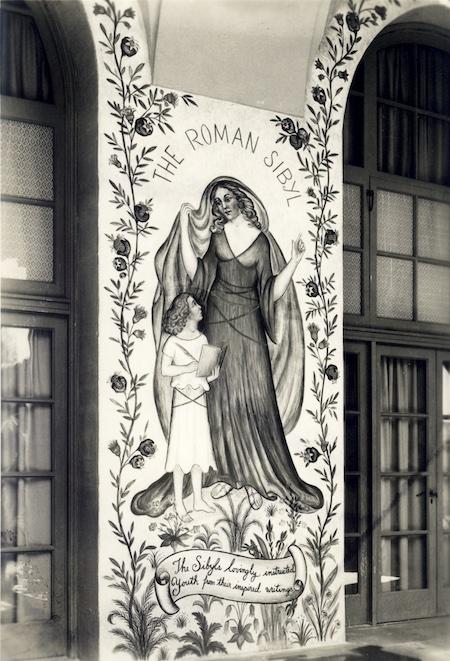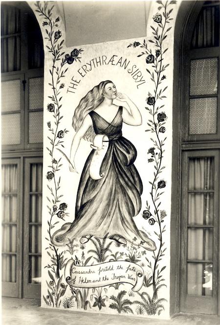 Each of these Ebell artworks depicted a Roman, Cumaean, Erythraean, and Delphic sibyl—"The Four Sibyls”—gowned in long robes and dresses, encircled by flowers, with a scroll close by. The frescoes were bold in color and quite modern for the times.