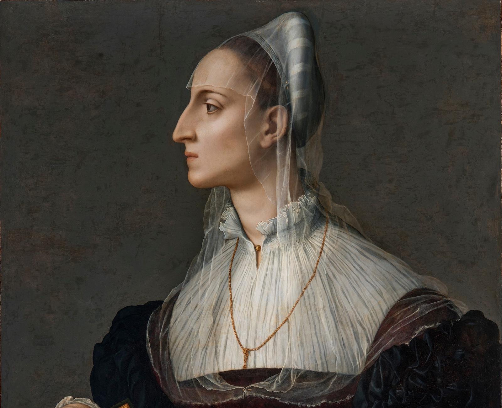 Bronzino (Agnolo di Cosimo di Mariano), Italian, Monticelli 1503–1572, Florence Laura Battiferri, ca. 1560. Oil on panel. 34 1/2 × 27 5/8 in. (87.5 × 70 cm).