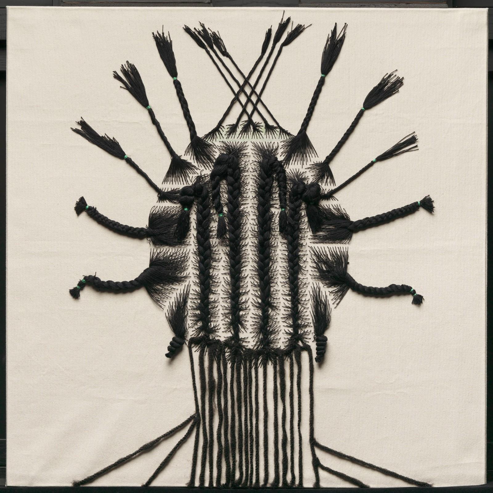 Sonya Clark (American, born in 1967), The Hair Craft Project: Hairstyles on Canvas, 2013. Silk threads, beads, shells, and yarn on eleven canvases; 3 of 11. The Heritage Fund for a Diverse Collection, Frederick Brown Fund, Samuel Putnam Avery Fund, and Helen and Alice Colburn Fund Sonya Y.S. Clark.