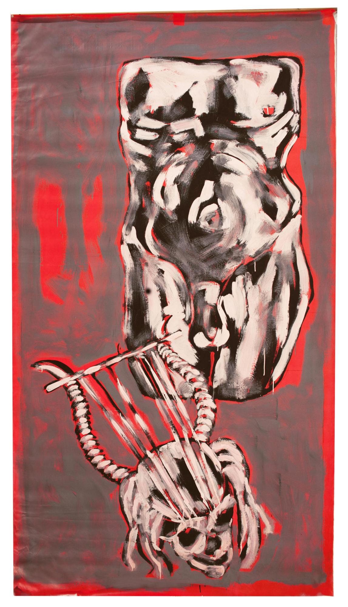 Luis Frangella, Untitled (Torso and Lyra), c. 1984. Acrylic on vinyl canvas. 110 1/5 x 56 3/10 in.