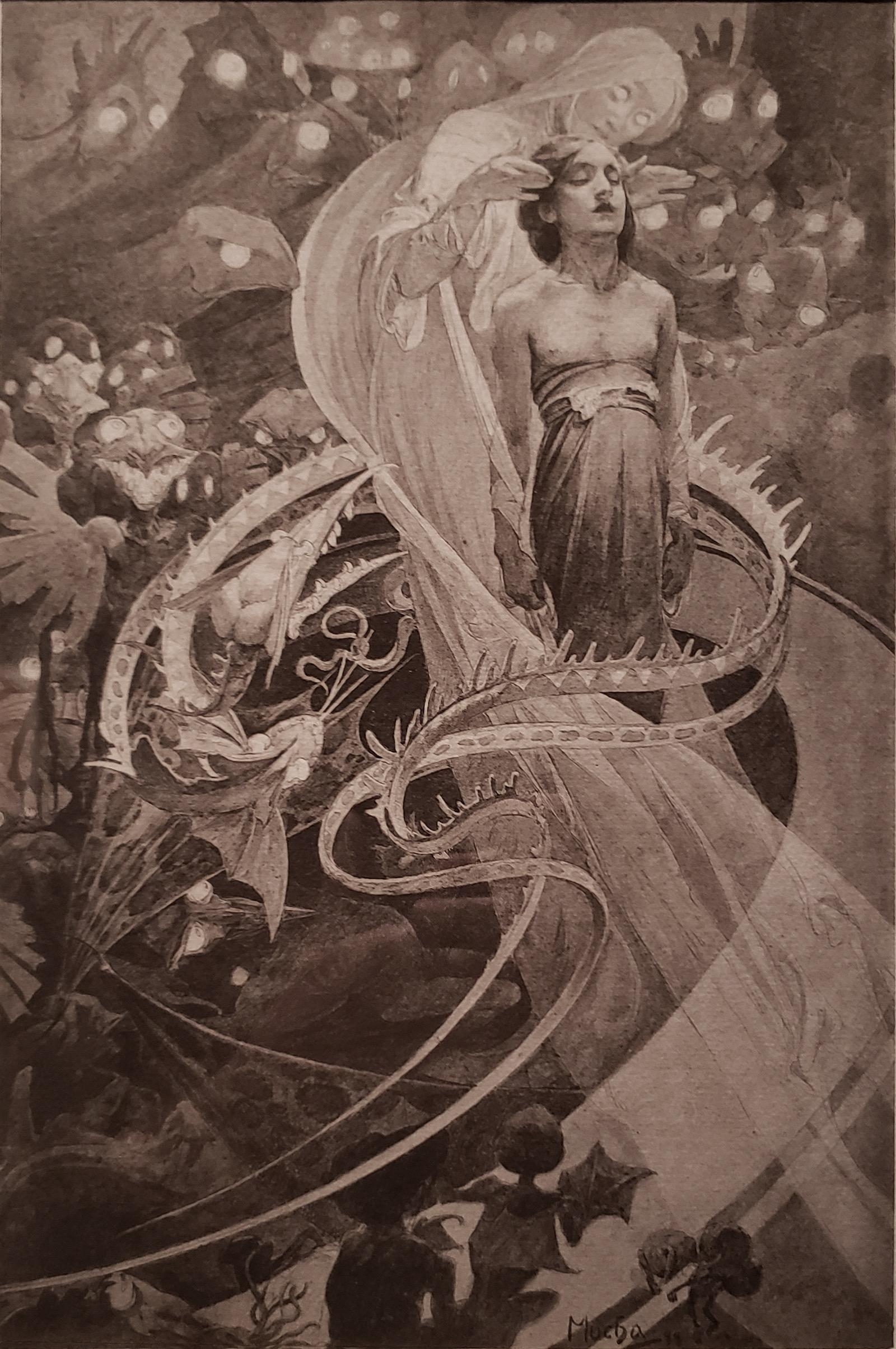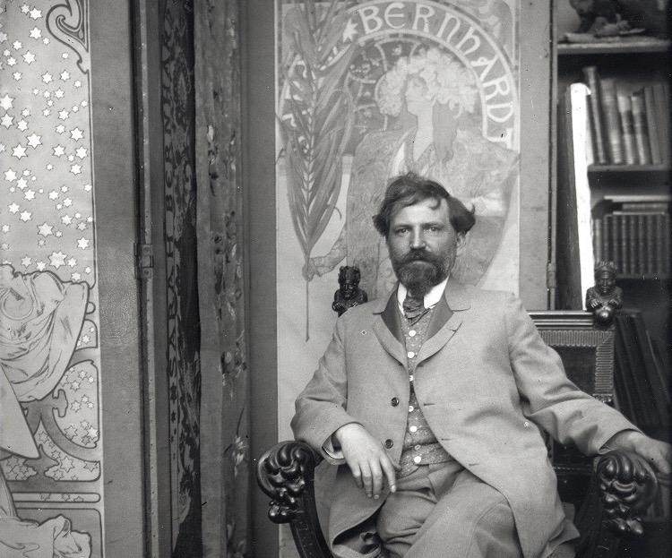 After she saw his design for the intricate, life-sized Gismonda (1894) she declared, “Mr. Mucha, you have made me immortal!” Soon, a six-year contract with Bernhardt cemented his own future.