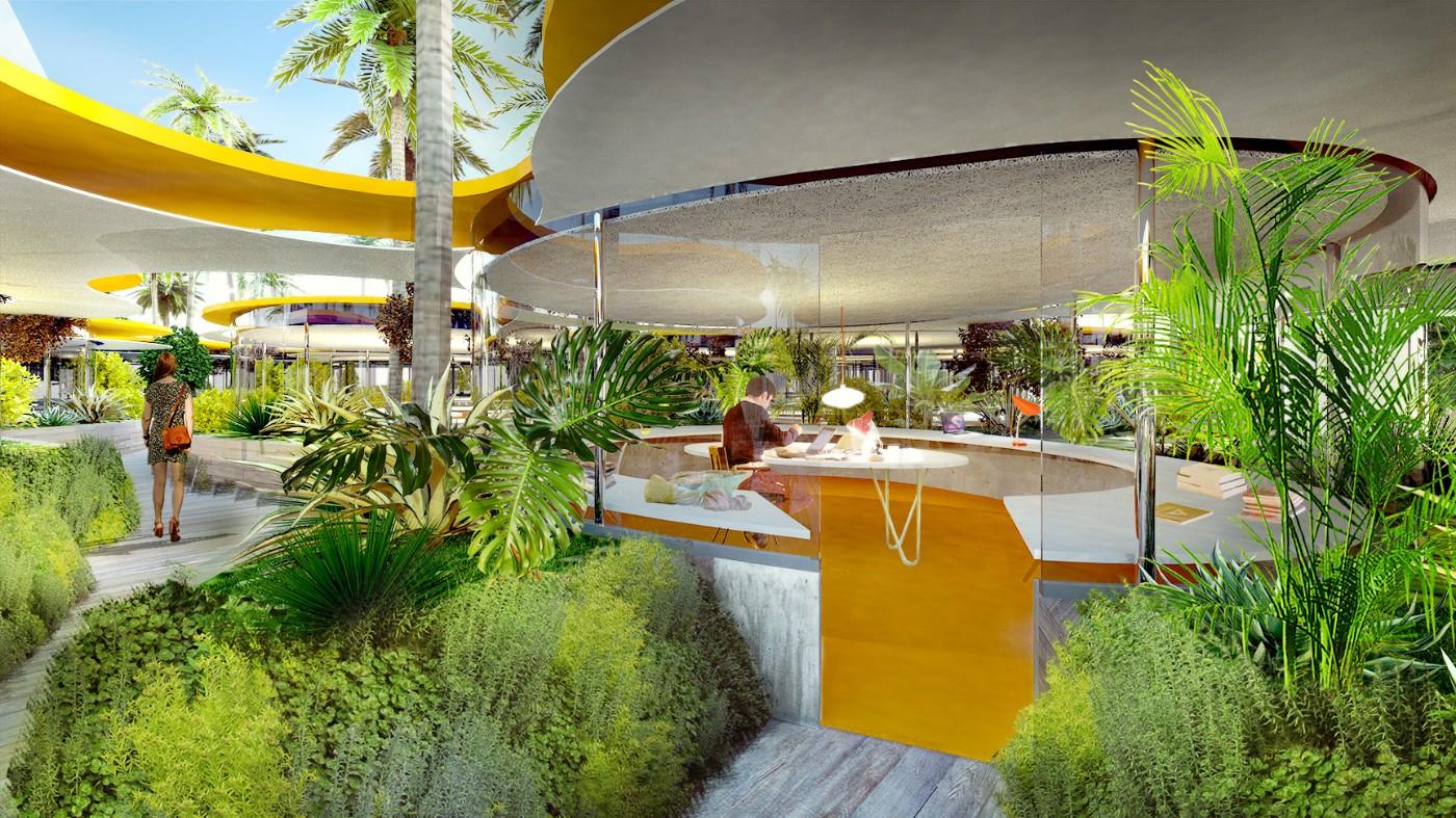 “Having a chance to celebrate him as an architect is more of what that’s about,” Aldenton says of the restored and reactivated building by Williams. “We’re really going to make this the piazza of the development. It’s open to the public. We’ve tried to find a way to get the most out of the building. If you can find a way to make it active for eighteen or twenty hours a day, it’s a great thing. The idea is that we can activate this, do yoga early in the morning or run a cultural program.”