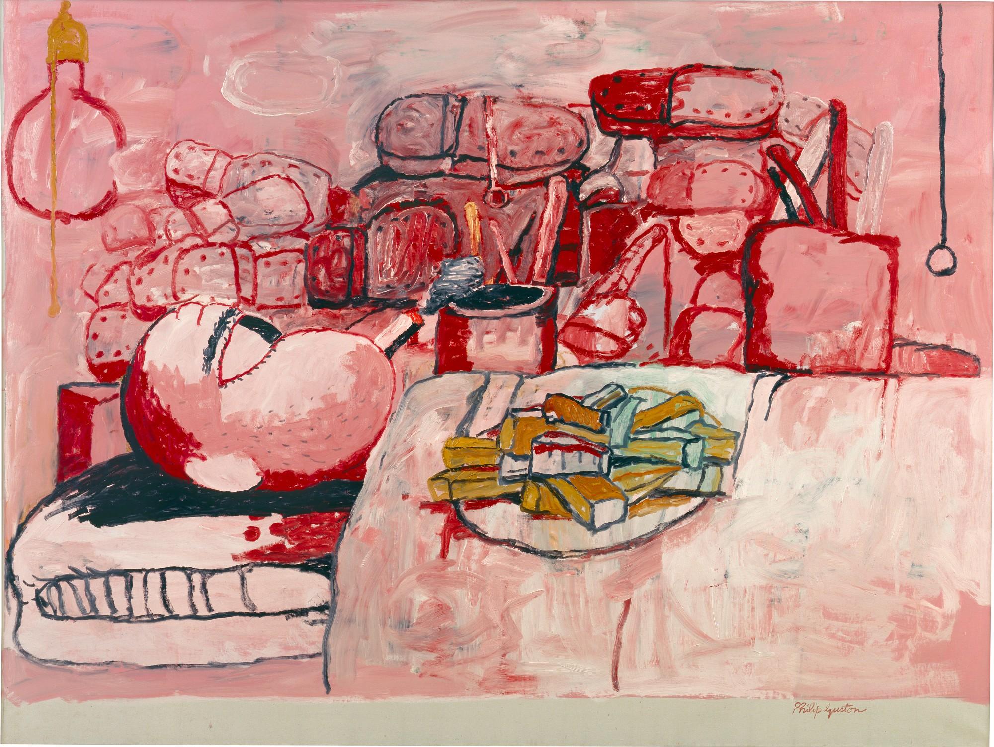 Philip Guston, Painting, Smoking, Eating, 1973. Oil on canvas. 77 1/2 × 103 1/2 in. Stedelijk Museum, Amsterdam.