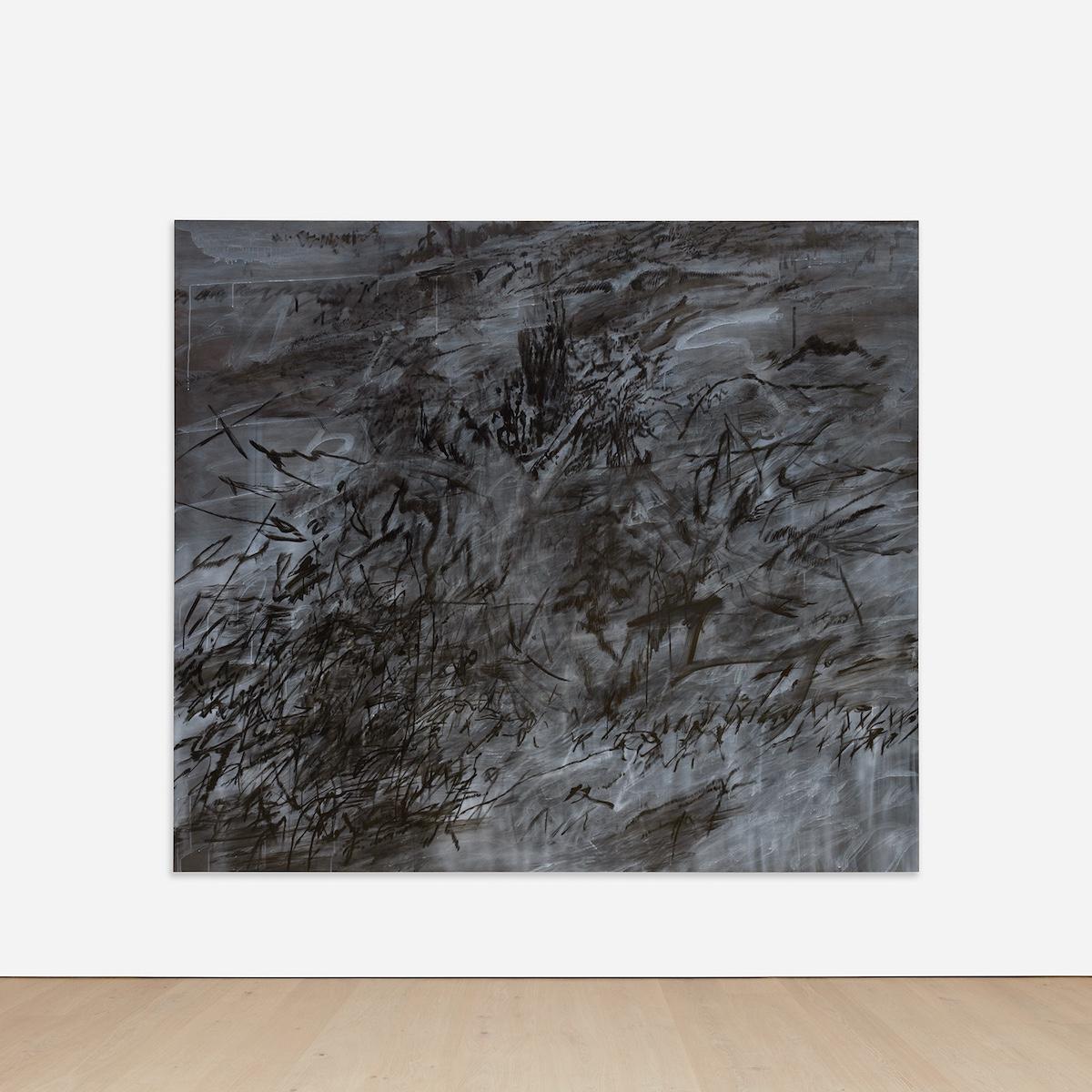 Painted in 2005, Cy Twombly’s colossal Untitled, part of his Bacchus series, illustrates the buoyant vitality and potential rage brought on by intoxication, with a riotous explosion of red looping ellipses against a white background. The painting also references the moment in the Iliad when Achilles kills Hector and drags his corpse around the walls of Troy. Sixteen feet wide, it is one of the largest of Twombly’s works to be auctioned. Twombly’s work has been incredibly popular on the auction circuit, and this piece inspired very active bidding.