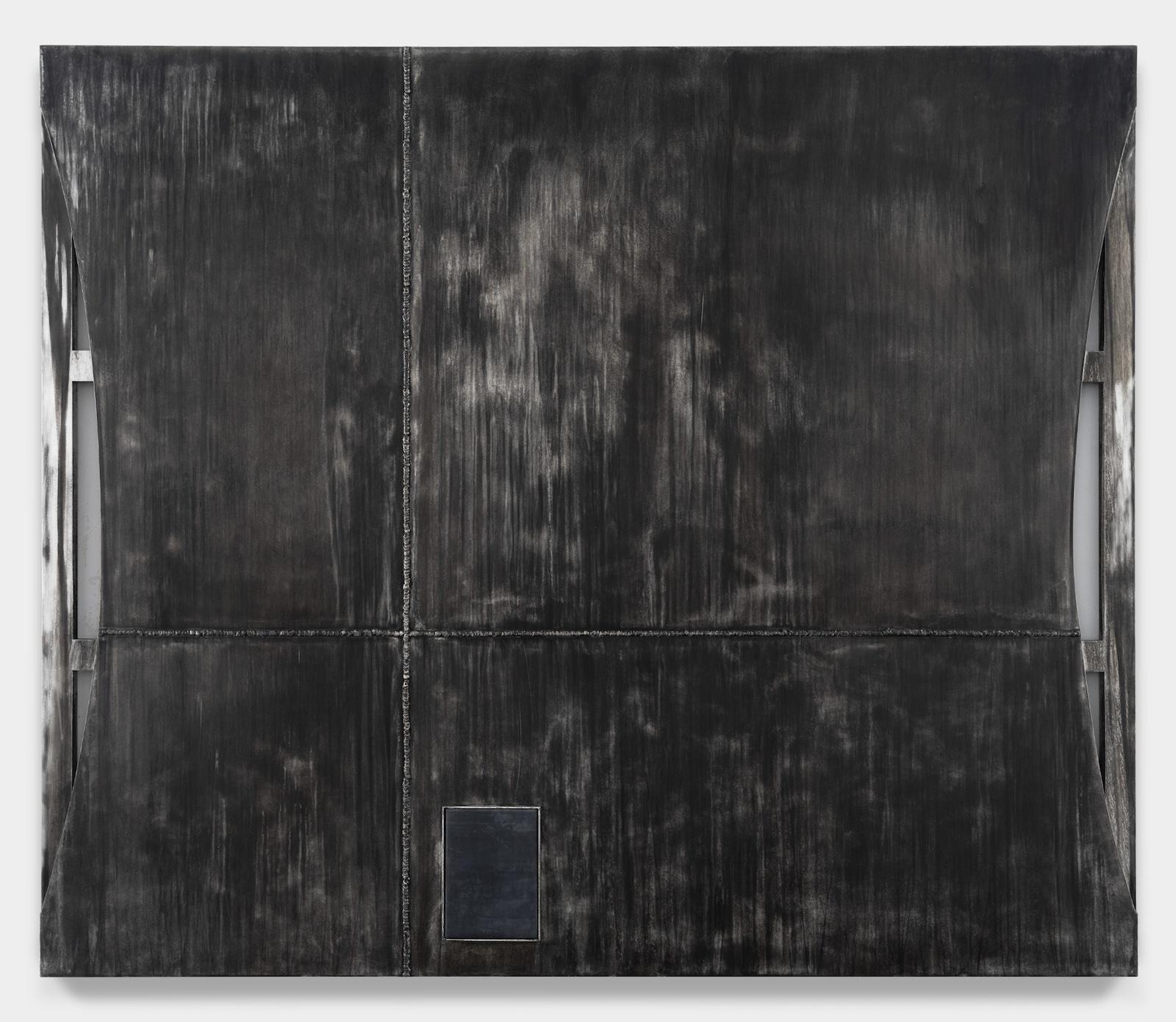 Reginald Sylvester II, Welded Tribute, 2024. Aluminum blackener on aluminum, 66" x 90" x 1.375" (167.64 cm x 228.6 cm x 3.49 cm) Edition 3 + 1AP. Photo by Daniel Greer, The artist and Maximillian William, London