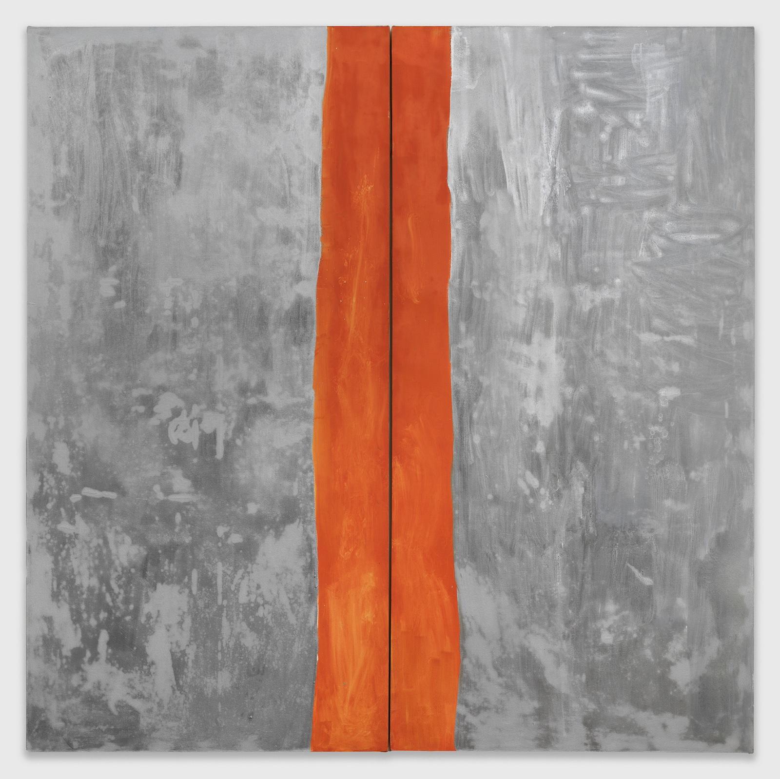 Born in California and schooled in San Francisco, Sylvester found a steadfast supporter for his work with his first solo outing at Maximillian William in 2019. Moving from abstract expressionist canvases and color field paintings to paintings with cutout areas exposing their structural supports and minimalist monochromes in unconventional materials, the New York-based artist keeps expanding the limits of how he works. This is evident in the two new metal paintings made with aluminum blackener on sheets of aluminum mounted on aluminum stretcher bars on view at the fair.