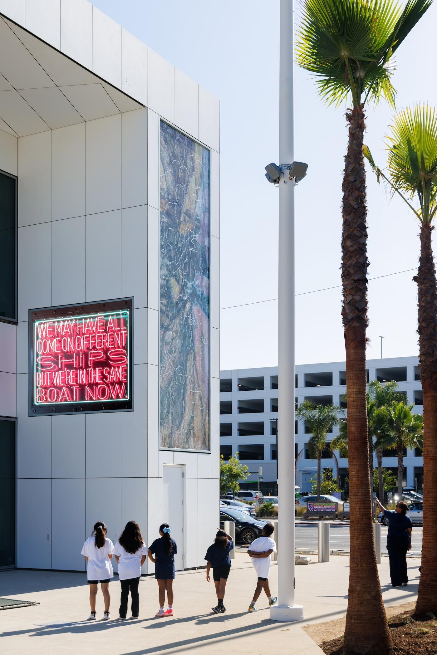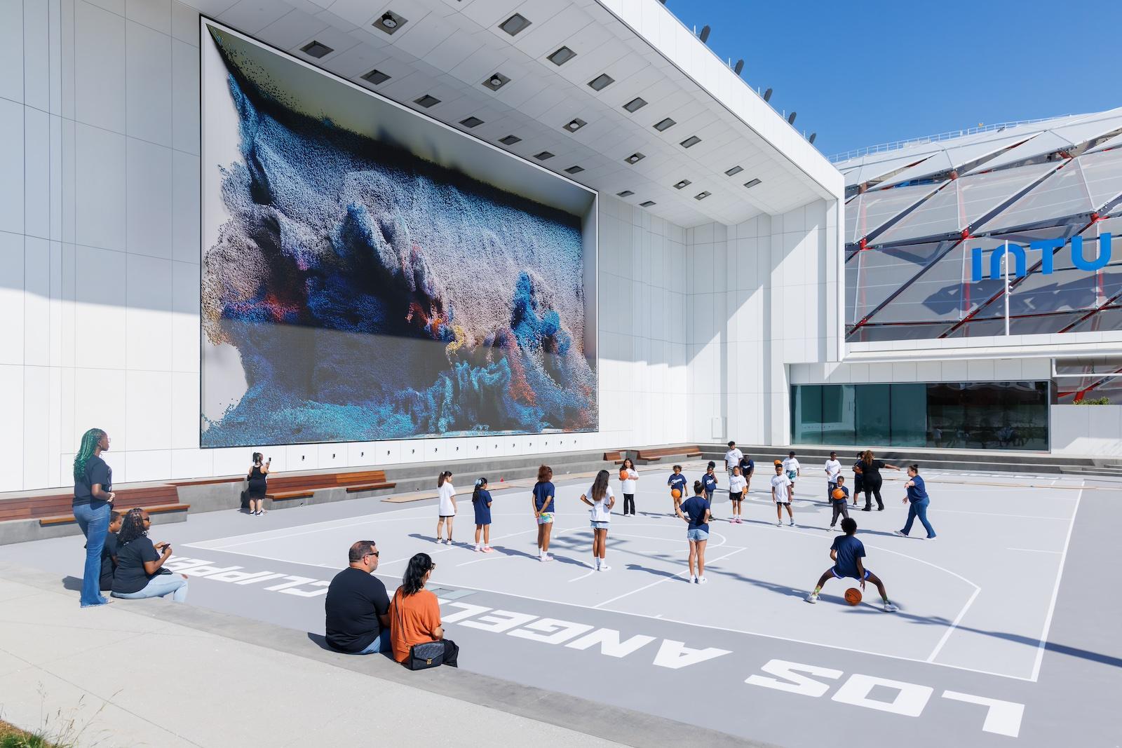 When organizers were considering which Los Angeles artists to commission for the Intuit Dome— the new home of the Los Angeles Clippers— they could have chosen hometown names like Shepard Fairey, Betye Saar, or even Catherine Opie, whose photographs are currently on display there, on loan from MoCA. Instead, they chose artists from the community, people like Patrick Martinez, Michael Massenburg, Jennifer Steinkamp, Glenn Kaino, Charles Gaines, Refik Anadol, and Kyungmi Shin.