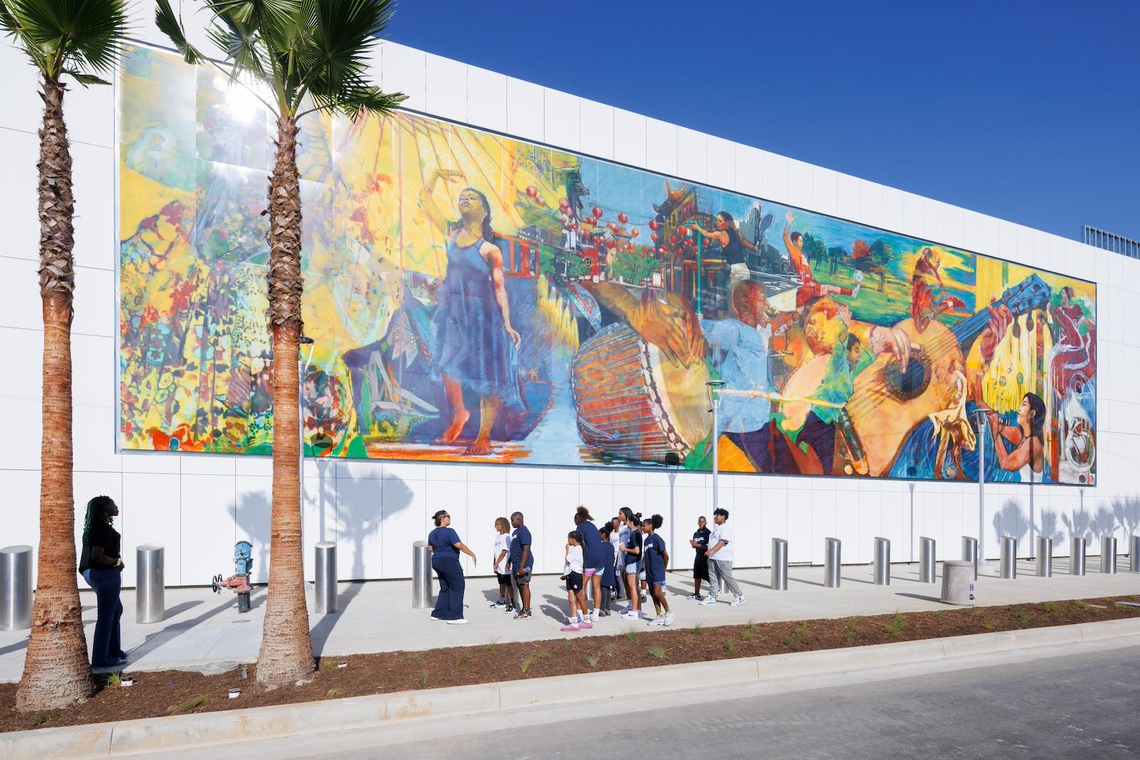 Michael Massenburg, Cultural Playground, 2024. Porcelain enamel on steel panels, 25 x 100 ft.