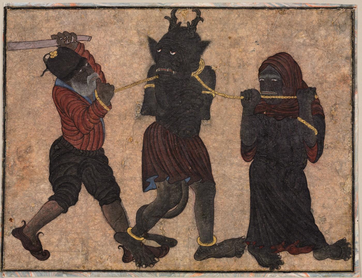 Demon in chains, c. 1453. Style of Muhammad Siya Qalam (Iranian)