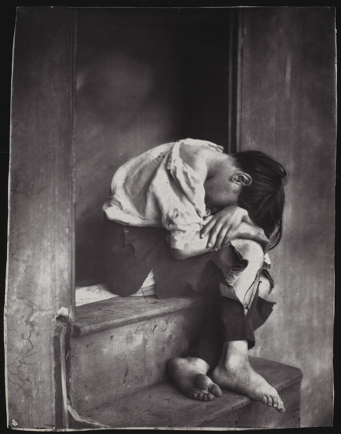 Of the known nine copies, three were purchased by Prince Philip, who is said to have had advised Rejlander on the concept of the piece. With the royal purchase, outrage was silenced, but Rejlander, discouraged by the episode, turned away from composite printing. Subsequent work focuses on portraits and advocacy on issues like child poverty. Poor Jo is a portrait of a waif in tatters, sleeping in a doorway. To take such a picture with the technology of the time is nearly impossible, so Rejlander would pay the child to come back to his studio and reconstruct the image there.