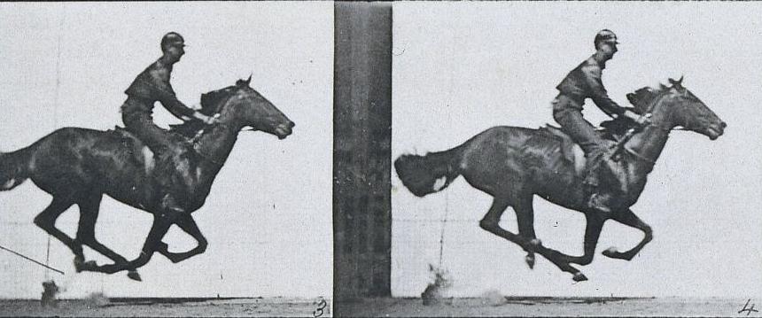 Artists had known that all four hooves of a horse come off the ground during a gallop, but Muybridge proved that the horse collects his hooves under his stomach, rather than extending them in front and behind him as Delacroix had insisted.