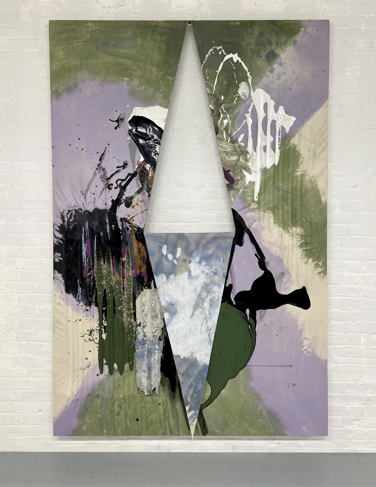 Rosy Keyser, I Want to Fuck a Mountain, 2021. Acrylic, enamel, oil, pastel, and cast papercrete on canvas.