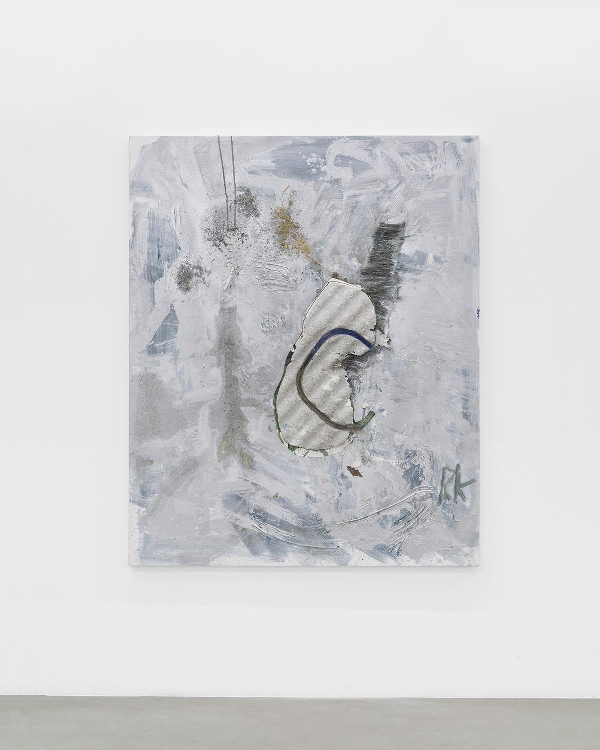 Rosy Keyser, Window Swap, 2020. Aluminum, enamel, sawdust, horsehair, and paper on canvas.