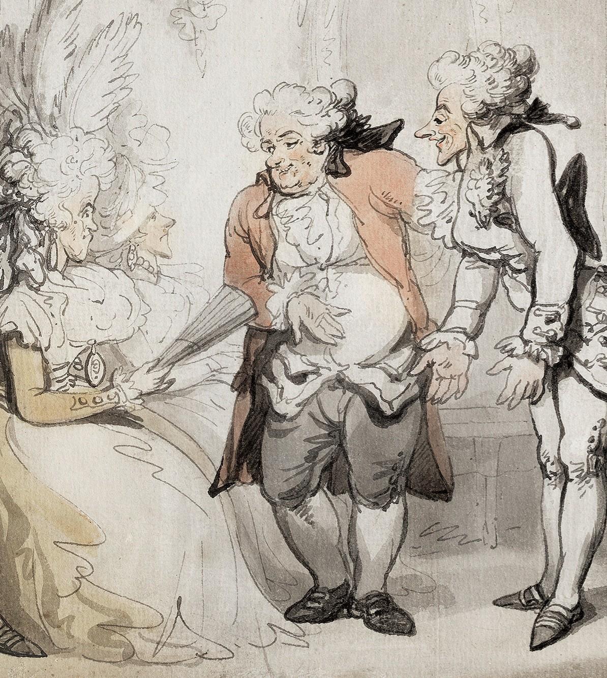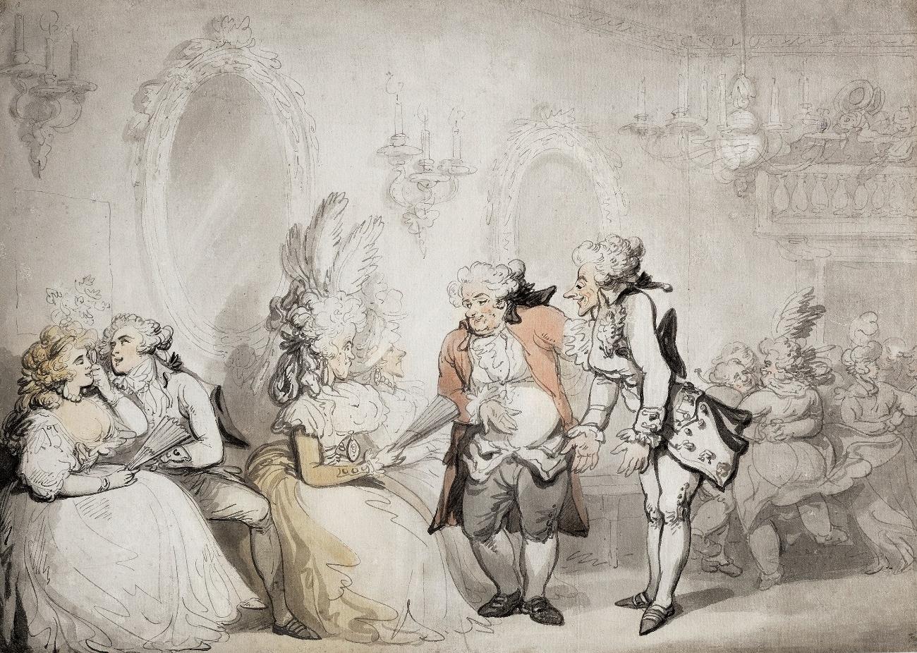 Thomas Rowlandson, A Master of the Ceremonies introducing a partner, pen, brown ink and grey wash on laid paper