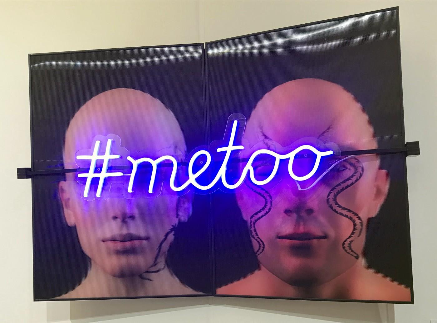 Even the nod to the Me too movement became a neon hashtag, which artist Lidia Vitkovskaya layered on top of a hologram.