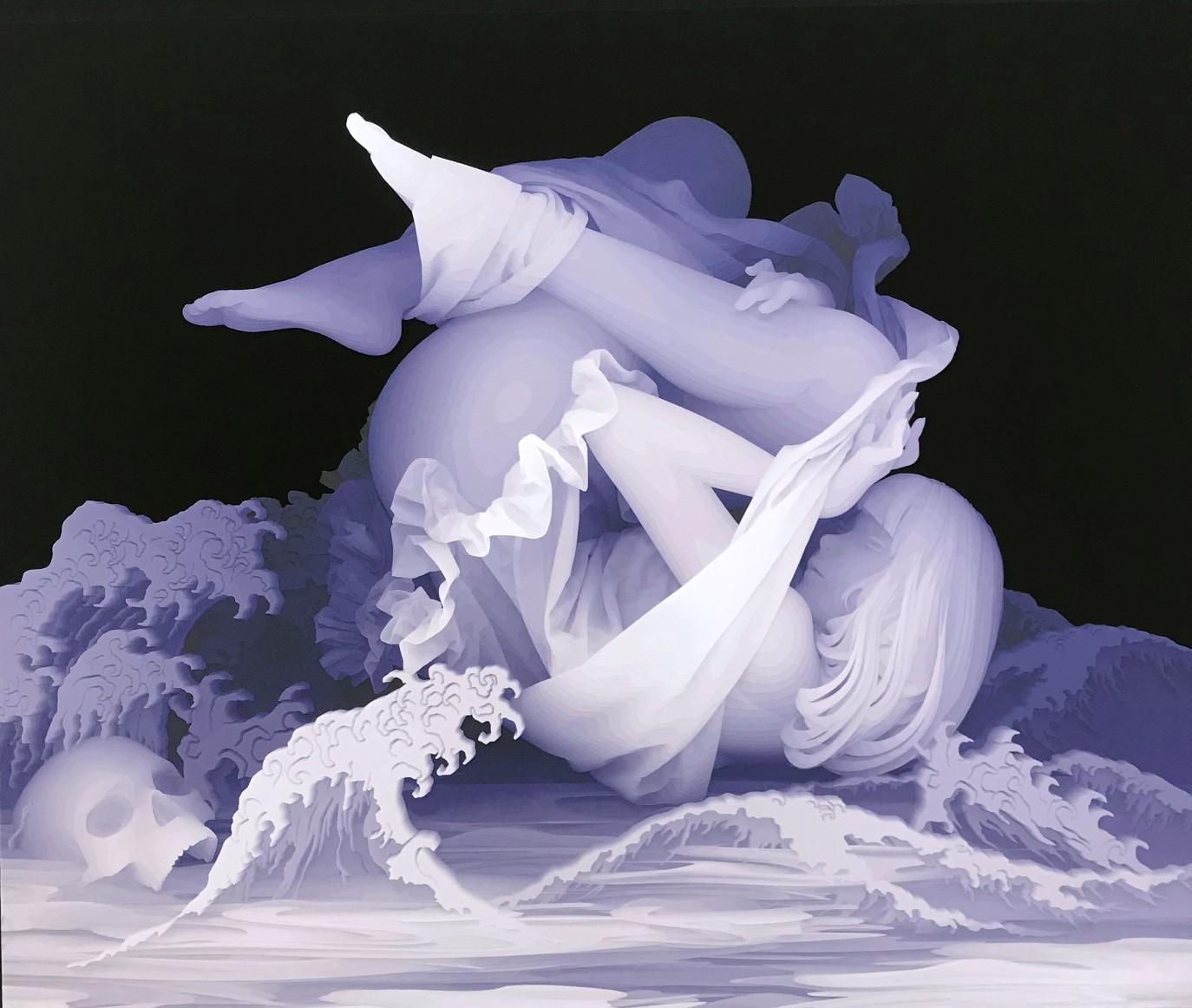 It was also interesting to see several works exploring the male nude in a way that defied the traditional definition of masculinity. Jan Vytiska's Twilight of the Gods depicts beautiful, yet desexualized youths in a New Objectivity-like style. Robert James Anderson has a series of acrylics on paper portraying lanky and ethereal men. Alexandria Lira’s How Far Will You Go? (Michael) plays with the reclined-nude trope, which has been associated with women and goddesses throughout the centuries.