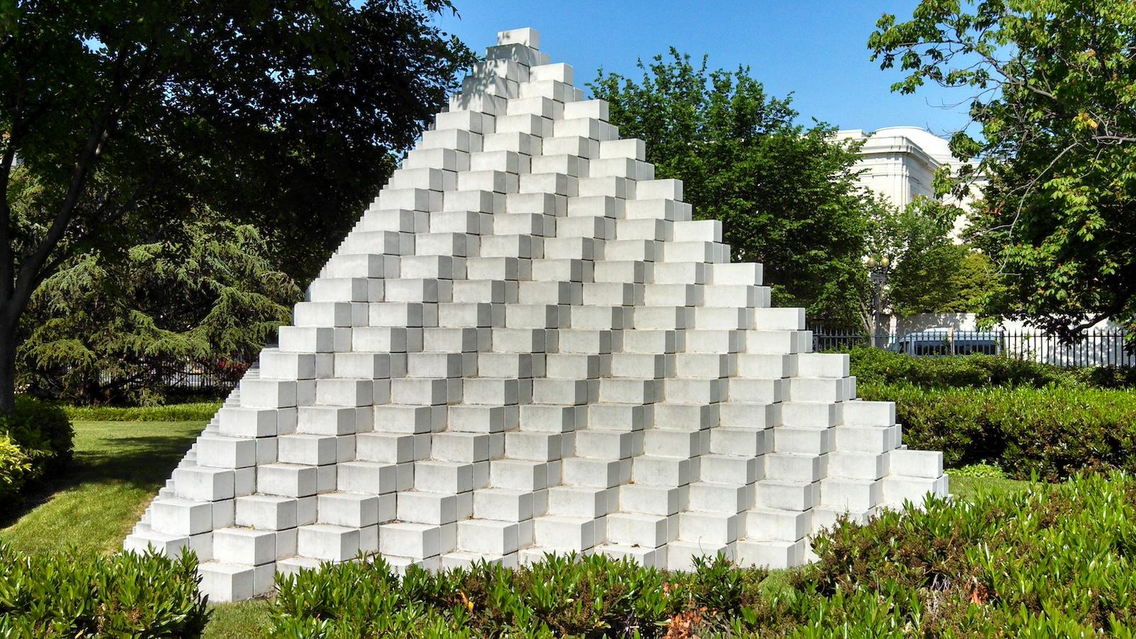 Four-sided Pyramid by American artist Sol Lewitt (1928-2007), Concrete and mortar, National Sculpture Garden, Washington DC. License