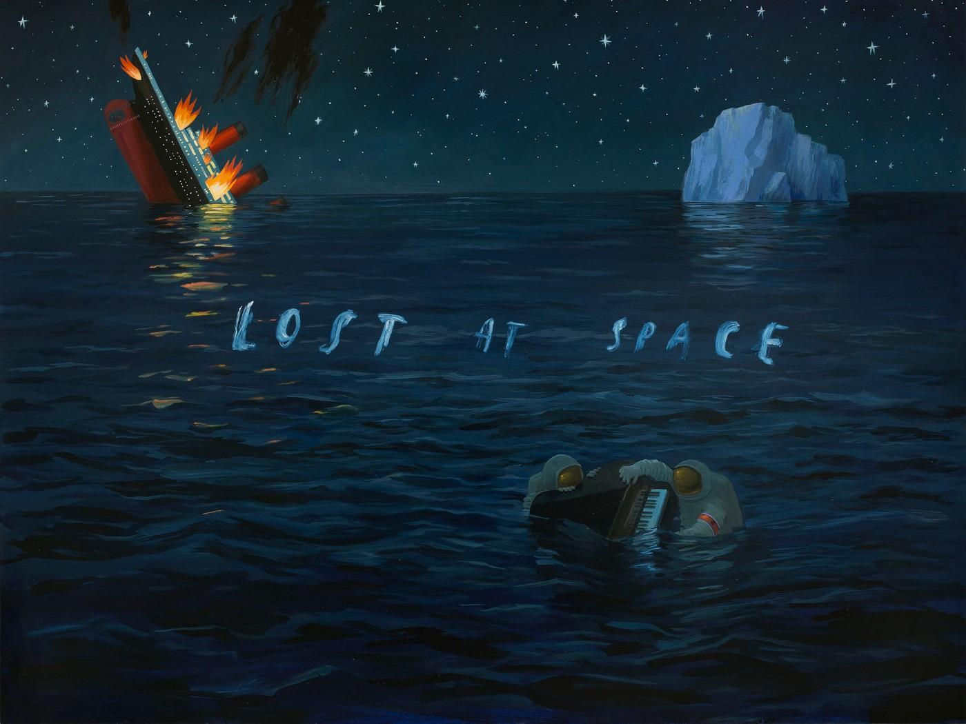 Award-winning children's book author Oliver Jeffers brings a sense of curiosity and a narrative sensibility to a new series of oil paintings at Bryce Wolkowitz Gallery. For All We Know, examines the cosmos and our connections to them. An award-winning artist, illustrator and author, Jeffers was inspired by his son to revisit his boyhood fascination with outer space. His surreal, nocturnal visions bring together constellation maps, deep sea divers, astronauts, sinking ships and pianos to tell stories about space, exploration and identity.