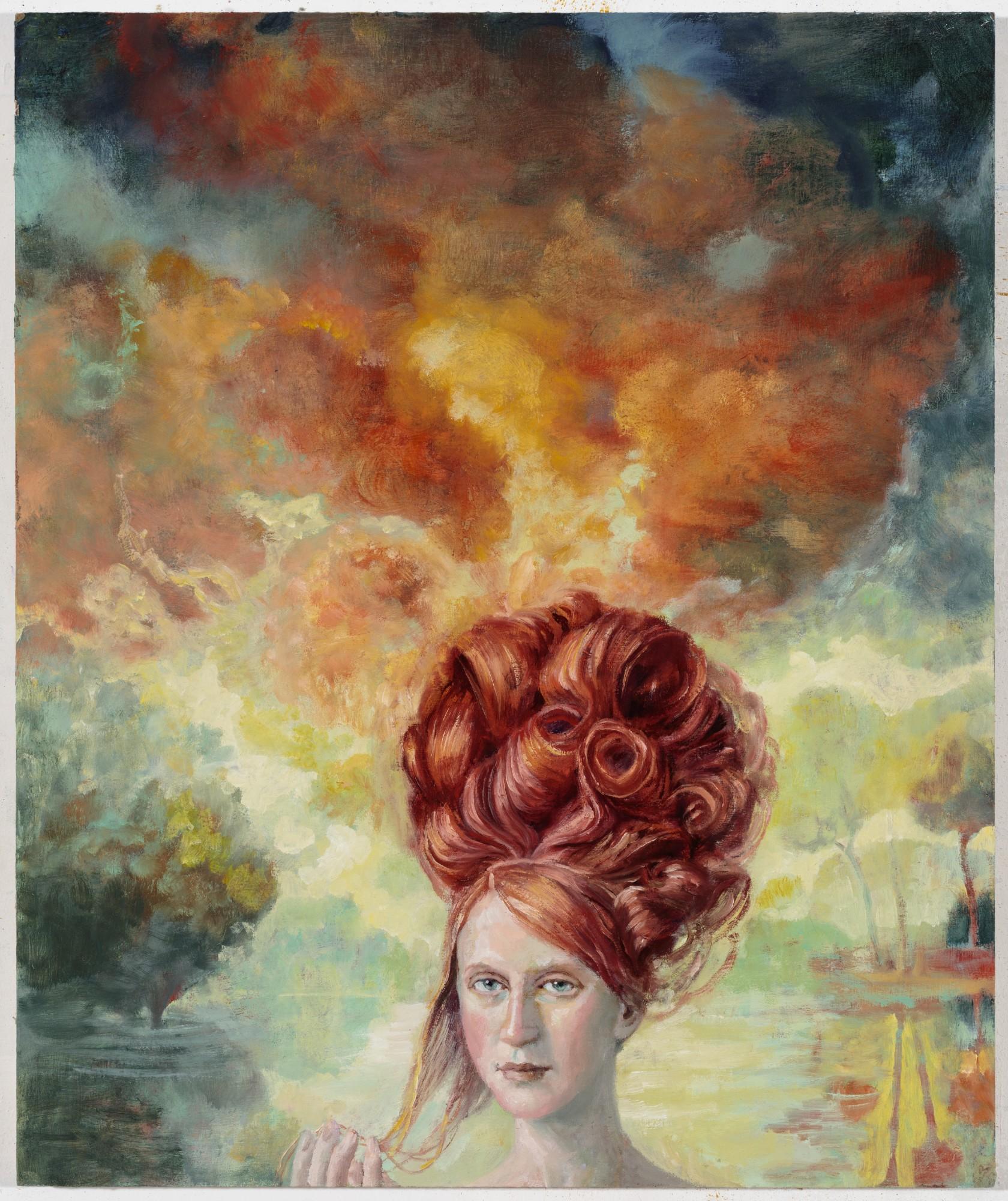 The artist first used the term “self-portrait” when she was inventing scenarios of subconscious imagery overlaid on fruit to create “a portrait of interiority.” She speaks with intimate candor about what could be considered her first proper self-portrait, driven by experiencing an ectopic pregnancy two years prior. Inspired by a Diego Velázquez portrait, in Self-Portrait as Infanta Maria Theresa Playing Coriolanus (1995), Heffernan combined her own body, complete with abdominal bandage, with the Infanta’s head. By merging with the queen, who herself had lost five of her six children, Heffernan felt a direct linkage: “I was suddenly aware of all the women in history who’d died in childbirth.”