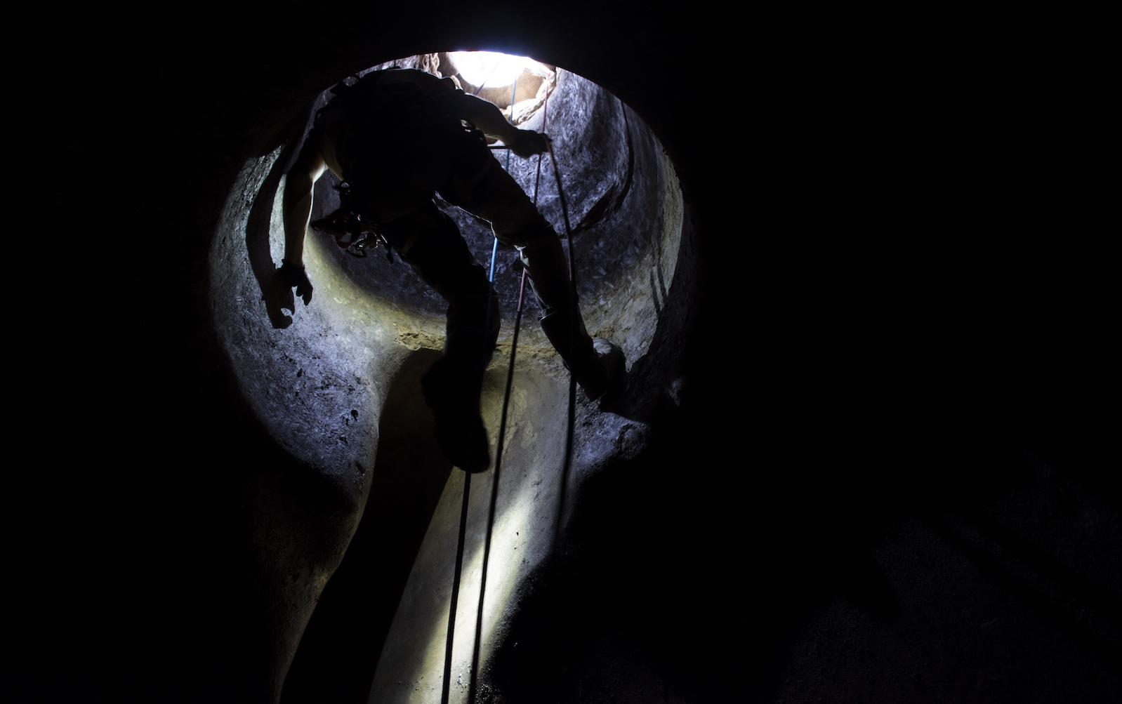 “It is dangerous work,” says Fiocchi. “There aren’t so many incidents but when things do go wrong they tend to be quite bad.” Each day at Vulci, Fiocchi must recycle the air in the cistern he excavates, taking out the stale air and then replacing it with fresh air from outside with a ventilator before scaling down a roped safety system. In the cistern, he works by helmet-light and whatever sunlight can reach him from above, the intermittent beeping of an air quality device letting him know the air is still safe to breathe.