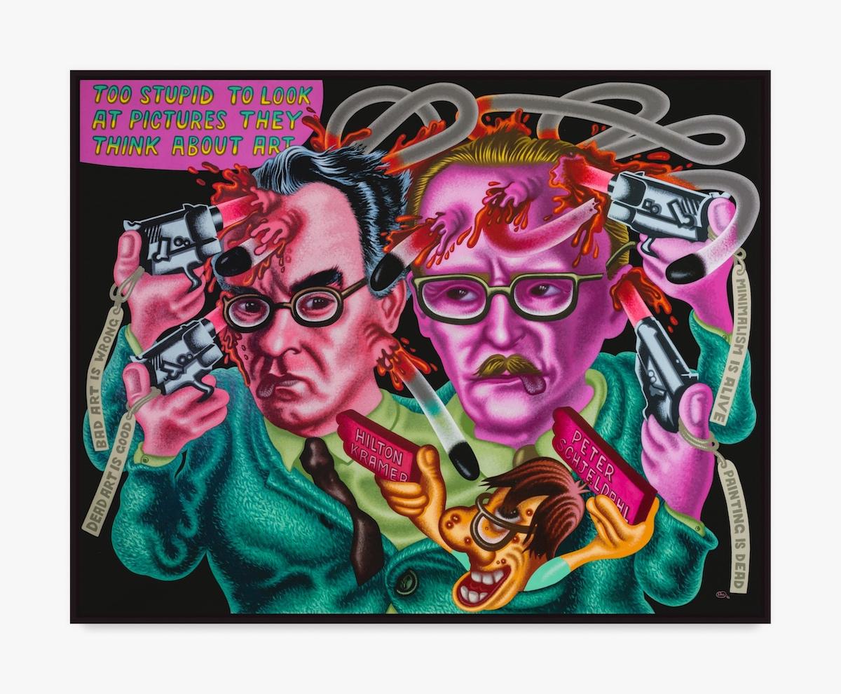 Peter Saul, “Art Critic Suicide” 1996, acrylic and alkyd on canvas.