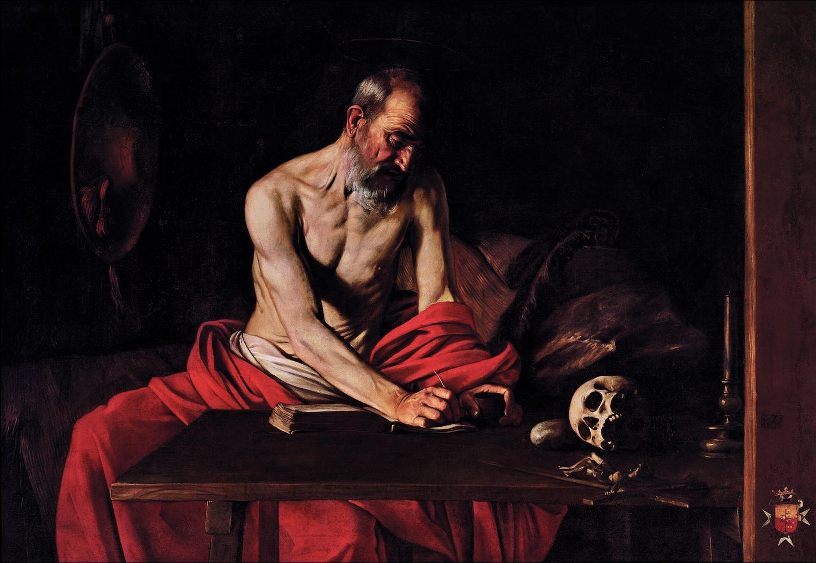 Caravaggio, Saint Jerome Writing, c. 1607-08. Oil on canvas. 44 x 61.8 in (112 x 157 cm).