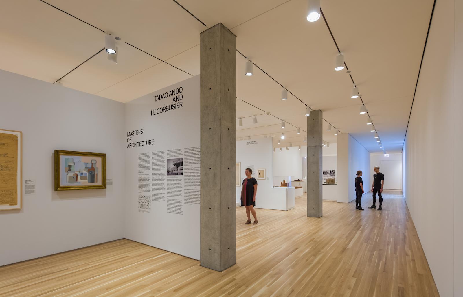 Now known as Wrightwood 659, this addition to Chicago’s cultural scene opened inauspiciously in 2018. The meticulously preserved exterior only hints at the dramatic renovation which can only be seen from the outside at night, through the lighted windows. The concrete interior surfaces are cured and polished, accented with stainless steel and glass. Besides the large, open, multistory spaces suitable for events, monumental sculpture, and exhibitions, the building features multiple white-cube galleries with track lighting for more traditional forms of Contemporary art. The inaugural exhibition of Wrightwood 659 featured the architectural work of both Ando and Le Corbusier.