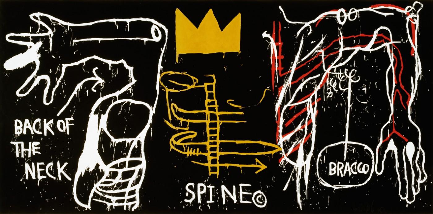 Jean-Michel Basquiat, Back of the Neck, 1983. Screenprint with hand-coloring on paper, 127.6 x 259.1 cm Edition 1/24. Brooklyn Museum, Charles Stewart Smith Memorial Fund.