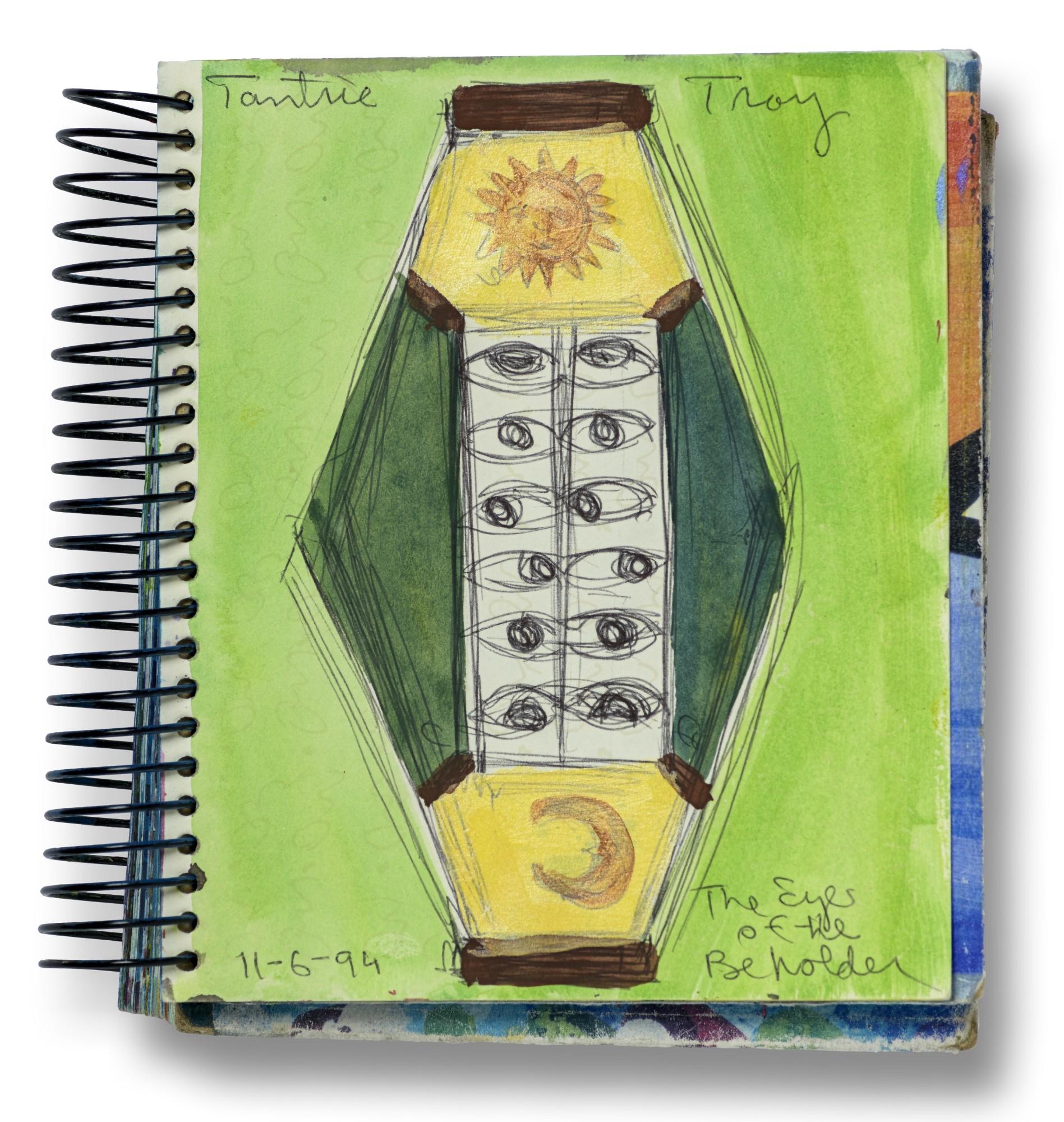 Betye Saar, Sketchbook page for "Eyes of the Beholder," November 6, 1994. Watercolor and ballpoint pen.