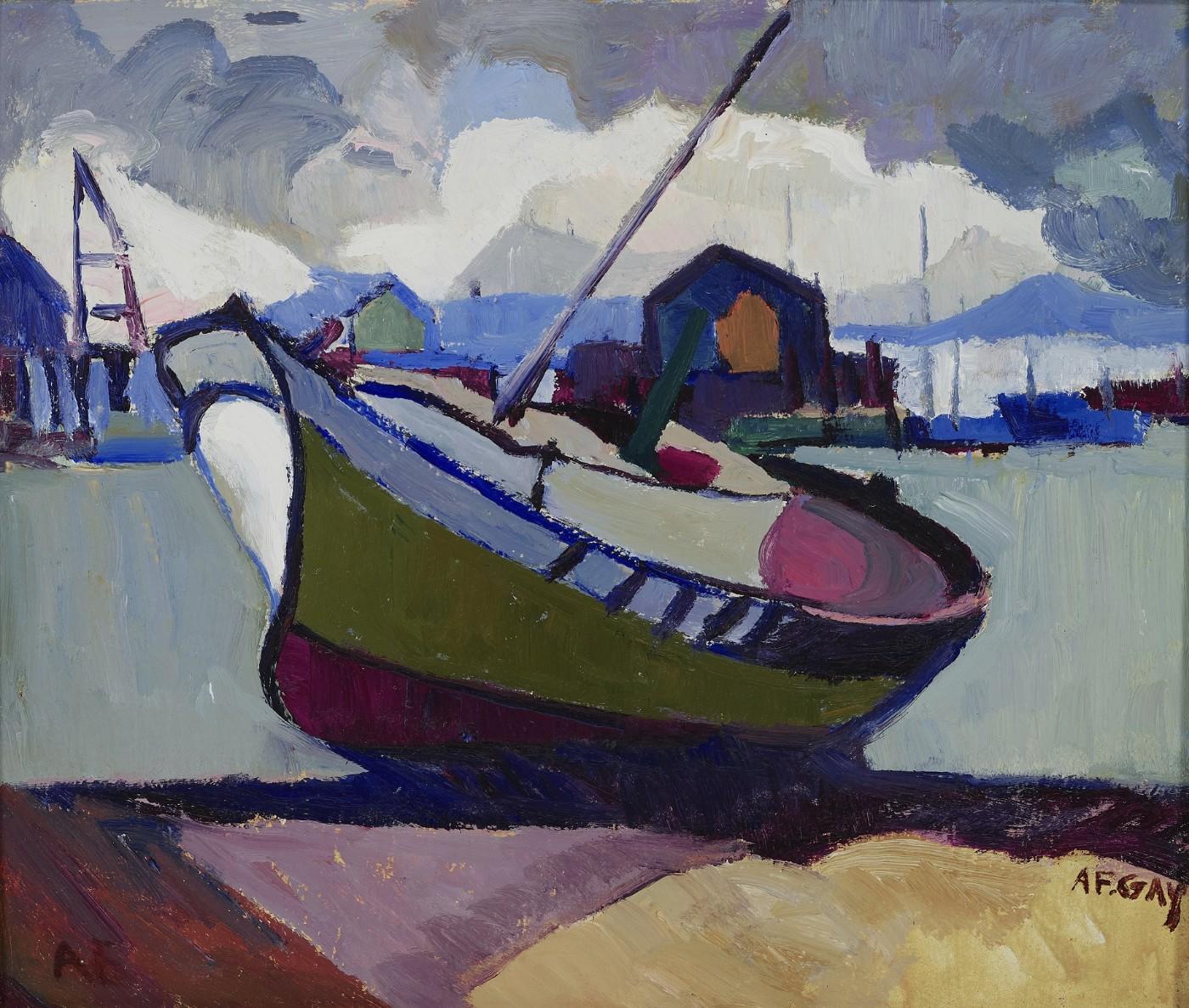 - August Gay's Fishing Boat Aground, painted circa 1930, sold for $87,575 (estimate: $60,000-80,000)