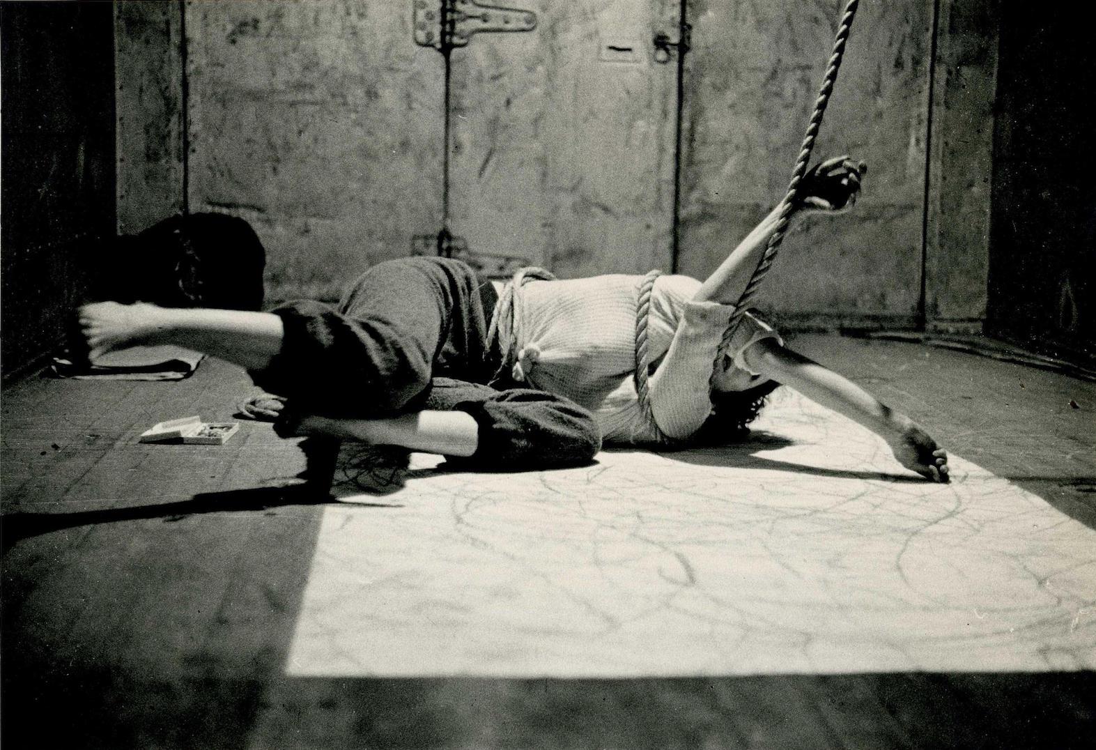 The exhibition charts Schneemann’s radical work using her own body as a medium, often directly addressing the misogyny she experienced, the historical suppression of women and the taboos around women’s bodies. Key works include a series of photographs from Schneemann’s first solo performance Eye Body: 36 Transformative Actions for Camera (1963), in which she staged a series of gestures amid a sprawling environment of materials.