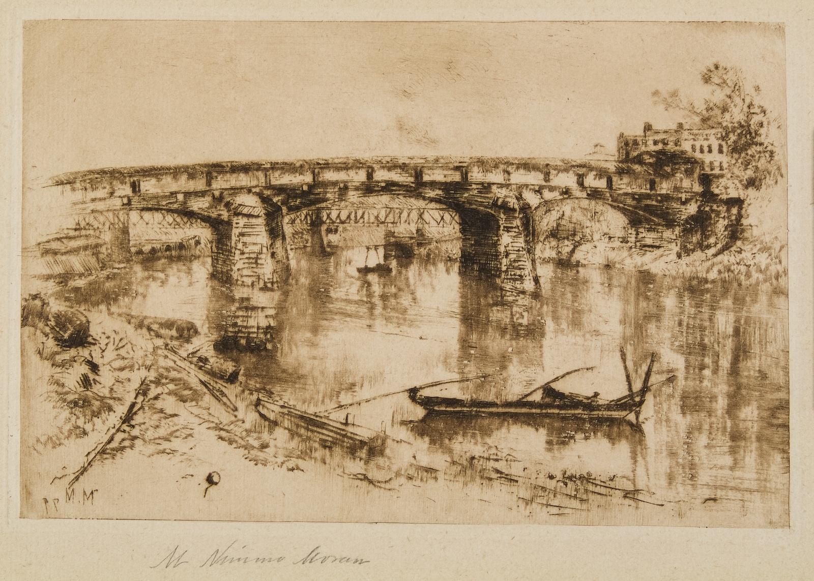 A renowned painter and etcher, Thomas Moran (1837–1926) is known as one of the premier landscape painters of the 19th century, having made substantial contributions to American cultural history during his 70-year career. Born in Bolton, England, Moran immigrated to the United States in the early 1840s and lived in Philadelphia, PA. He began work as an apprentice at an engraving firm as a teenager and furthered his studies working in the studio of his older brother Edward, an established marine painter. Under Edward’s tutelage, Moran developed a life-long interest in the paintings of English artist J.M.W. Turner, a visual influence that is particularly visible in the iconic watercolors Moran produced after joining Ferdinand Vandeveer Hayden’s 1871 expedition to Yellowstone. These landscapes drew immediate national attention and were praised as instrumental in the passage of the bill that established Yellowstone as the first National Park. Catapulting Moran’s notoriety, Congress purchased his large-scale painting The Grand Canyon of the Yellowstone (1872) to commemorate the legislation, and soon after acquired his oil The Chasm of the Colorado (1873–74) as well. In 1874, Moran completed Mountain of the Holy Cross, a large watercolor that became the artist’s prominent contribution to the Centennial Exposition in Philadelphia in 1876 and is now one of his best-known works uniting themes of wilderness and religion.