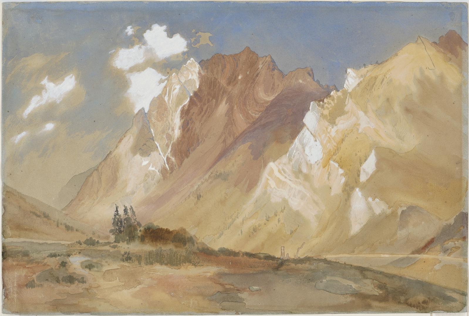 Drawing upon the Carter’s deep holdings of work by Moran and his family, as well as other ephemera and visual objects from the era, Thomas Moran’s Mount Superior explores Moran’s broader artistic practice and its relationship to popular conceptions of the West in the late 1870s and early 1880s. While Moran is most often associated with themes of western discovery, this exhibition uses historical photography of railway construction and other documentary materials, including tourist postcards and a novelty stereograph, to craft a sense of place around the creation of Mount Superior and connect Moran’s journey and resulting watercolor to the urban development that was taking place throughout the West at the time. The exhibition also includes several of Peter Moran’s watercolors from the trip, etchings by Thomas and his wife, Mary Moran, and photographs of Panama by Thomas’ older brother John Moran, whose travels, like those of his brothers, aligned with major industrial projects.