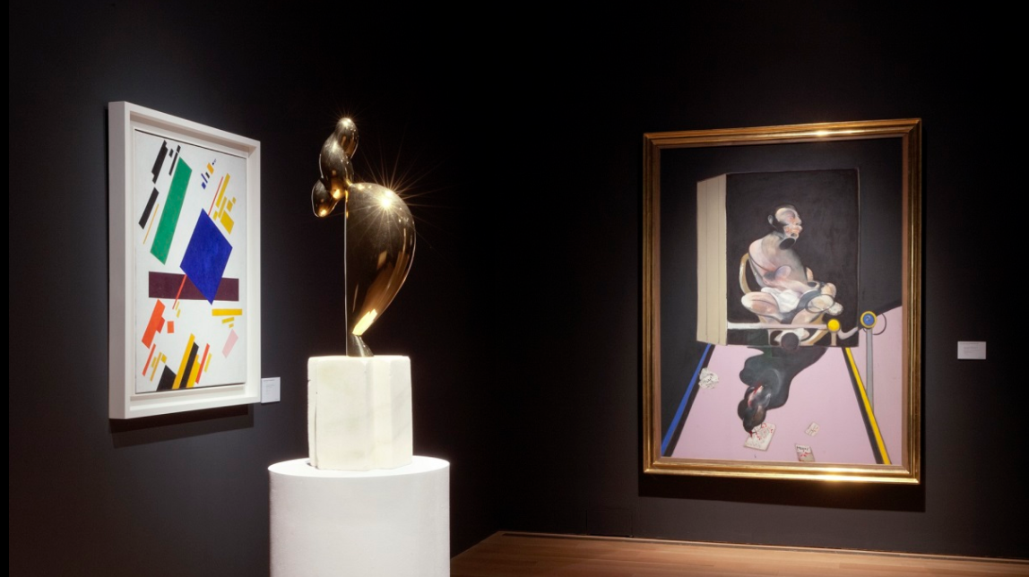 The auction was led by Kazimir Malevich’s Suprematist Composition, $85,812,500 (£63,423,873/ €71,922,672), and Constantin Brancusi’s La jeune fille sophistiquée (Portrait de Nancy Cunard), $71,000,000 (£52,475,979 / €59,507,761), both setting new world records for the artists at auction.