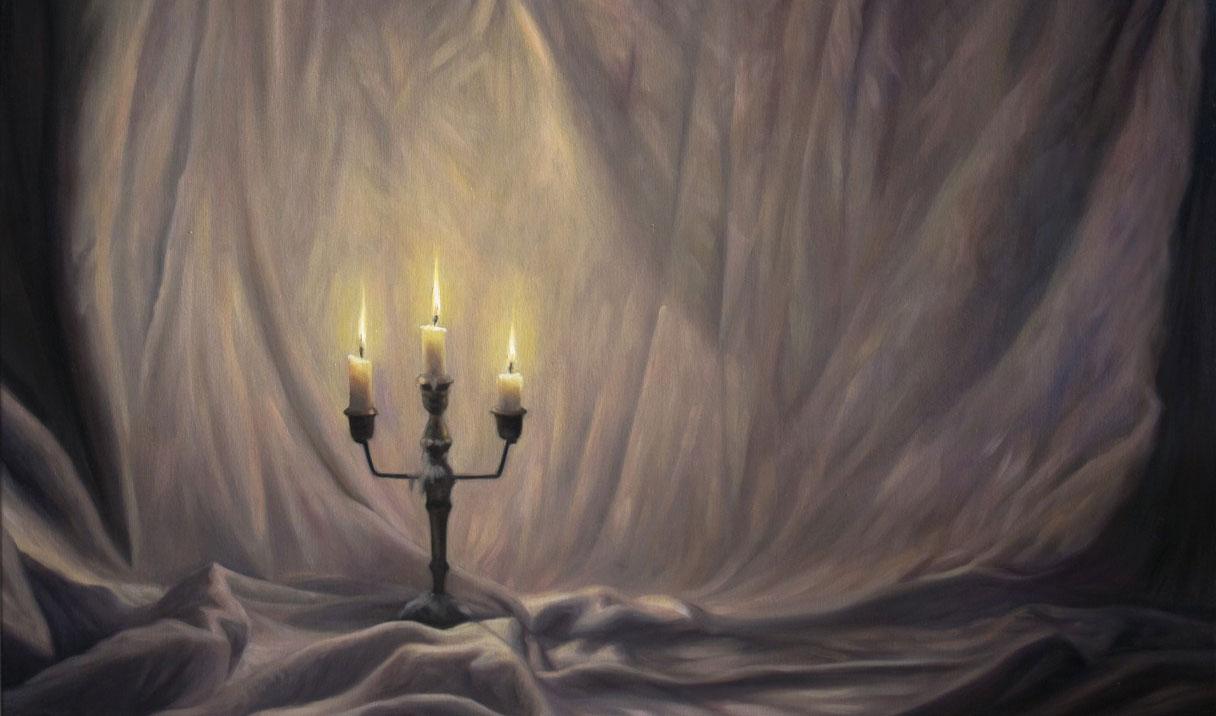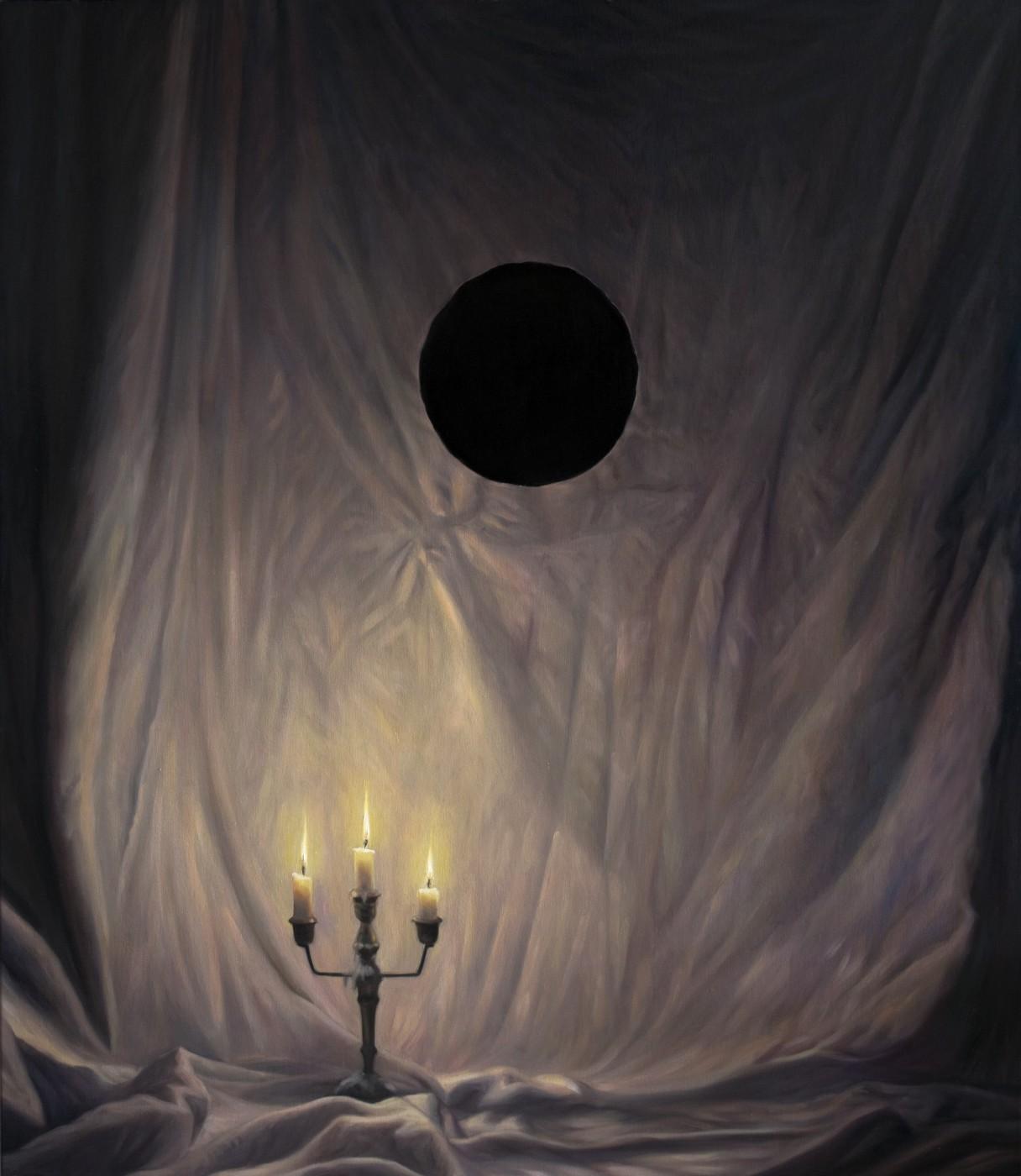 Painted after his father’s death, Noah Davis’ Painting for My Dad (2011) taps into night’s close association with death — the sleep that does not end. Depicting a lone figure carrying a lantern into the dark in what looks like a deep cave or an infinite starry night sky, the painting has become even more poignant in the wake of the artist’s own death in 2015.