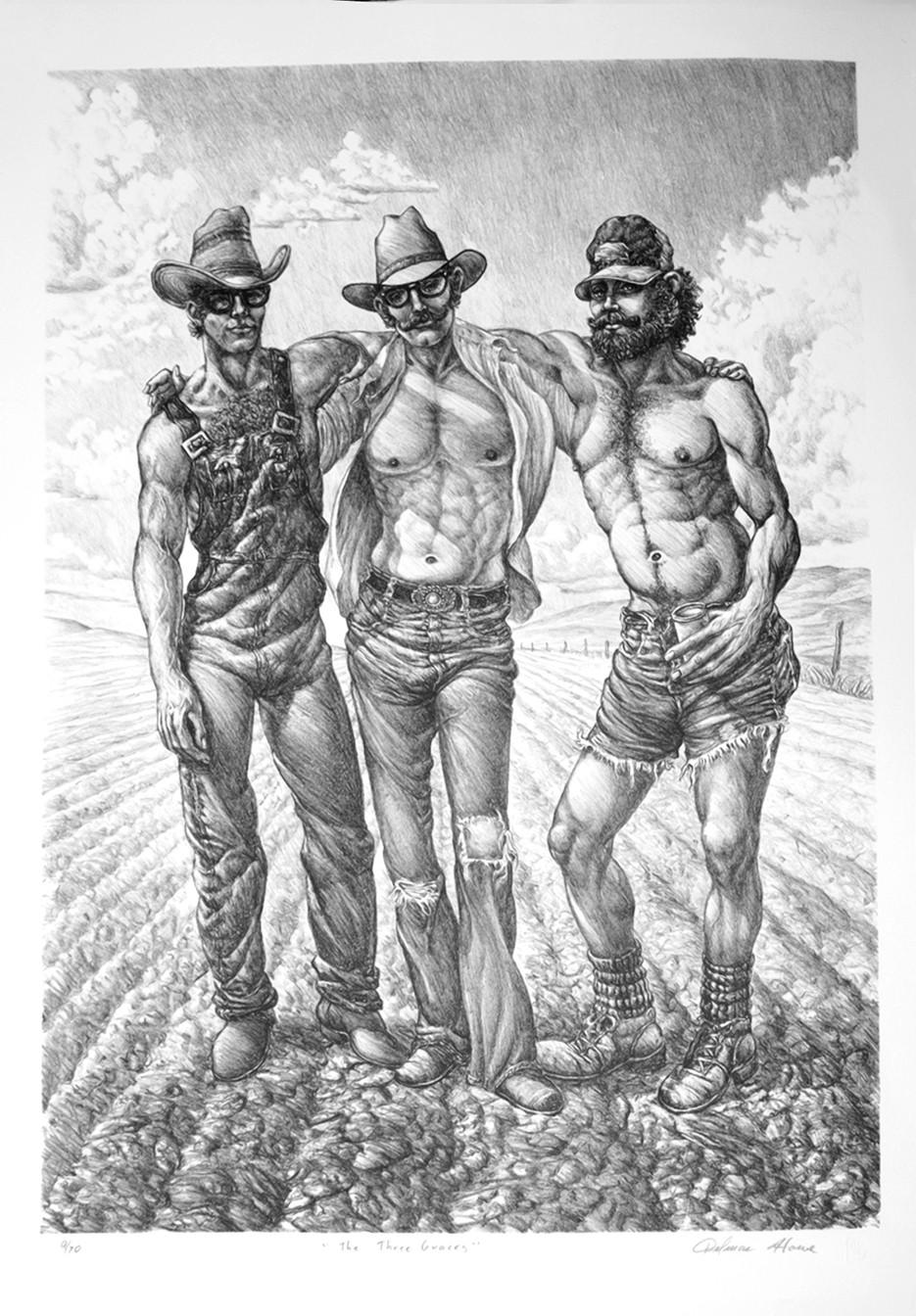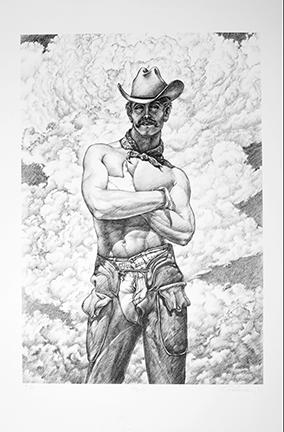 Howe moved to New York in the early nineteen-fifties to study music but soon realized that his calling was the painted canvas. His friend and the art historian Edward Lucie-Smith encouraged Howe to paint what he knew. What Howe knew was the cowboy culture of Southern New Mexico. He was raised in Hot Springs, now Truth or Consequences, New Mexico. As Howe was learning to paint, he fell in love with the style of the École des Beaux Arts. He also realized that the style of the École gave him a format to explore the male form at a time of very repressive attitudes about the LGBTQ+ community and to still be considered a serious artist.