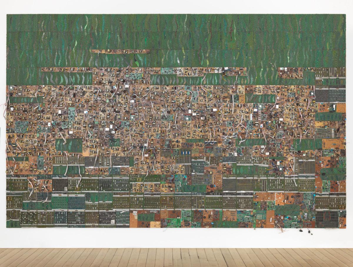 Sime (born 1968) creates large-scale modular artworks from discarded technological material such as electrical wires, circuit boards, motherboards and computer keys. Sime’s use of the detritus of technological progress touches on diverse themes ranging from environmentalism and globalization to the history of modern art. Sime sources these materials in his hometown of Addis Ababa, Ethiopia, at the Merkato, the biggest open-air market in Africa.