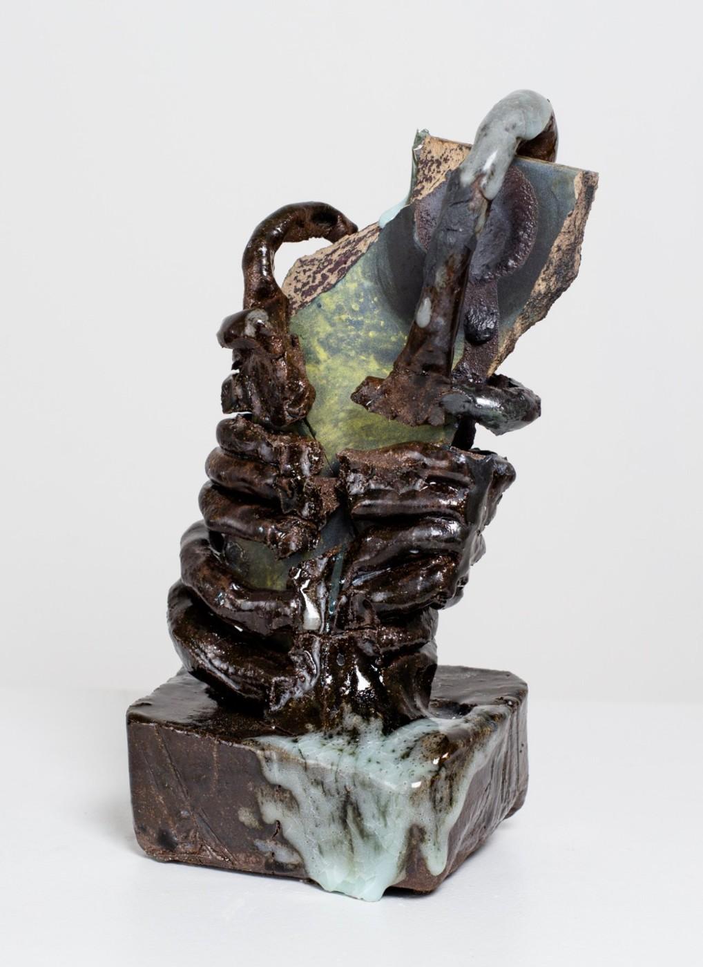 This sense of excavating is central to Linn’s work. Relics that appear fragile, in the end, are rock strong. The physical cracks in her work become a window into the internal makeup of the vessels; a metaphor for strength and beauty; a testament of surrender. The work negotiates the delicate balance between the limits of the medium and how this is both symbolic for—and reflective of—life’s imperfections, which cannot be controlled. Each scratch, crack, or mark could suggest vulnerability, but in fact the work is sturdy and resilient, as each person is delicate, imperfect, but still survives with stalwart strength.
