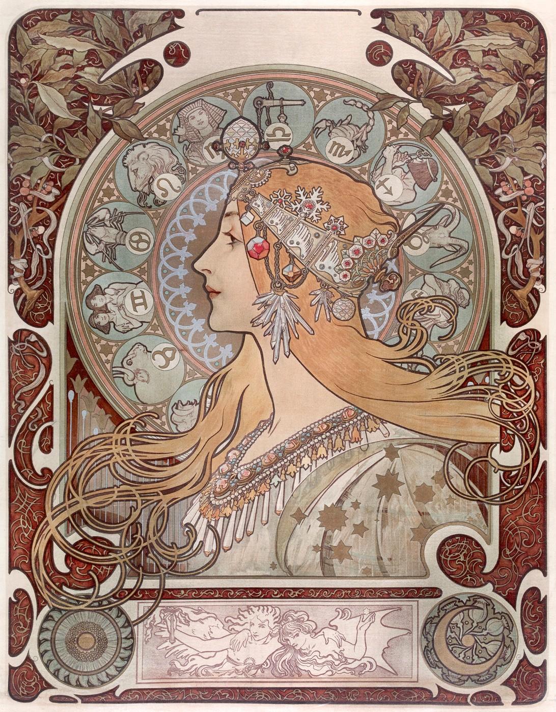 Alphonse Mucha, Zodiac, 1896, color lithograph on silk