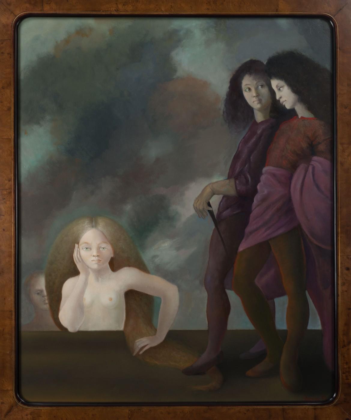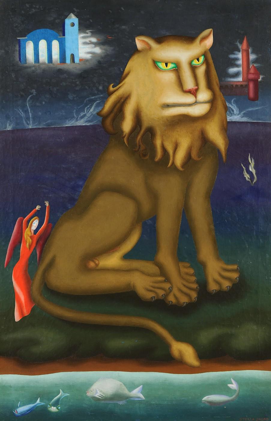 Exhibition highlights include a mystical portrait of an animal-human goddess, Untitled, by Leonora Carrington (1917-2011) from the late 1960s; a Mannerist-inspired painting mourning infertility, L'envers d'une geographie, by Leonor Fini (1907-1996) from the early 1960s; and a dreamlike nocturne, Sulky Lion, 1943, by Stella Snead (1910-2006).