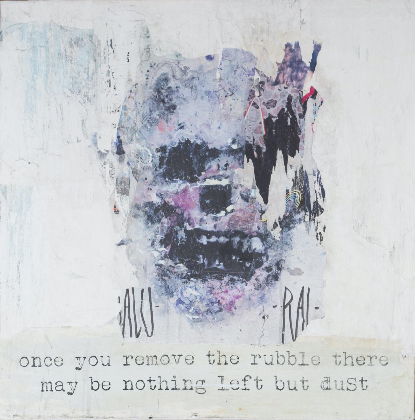 Each work in the ALL CAPS series begins with the collection of delicate paper materials sourced on the street from advertisements, notices and artworks in various stages of weathering and decomposition. The material collection and composition process lead to unique, organic works from often-times mass produced material. Through the process of collecting, sorting, and composing each work, various palettes, themes, commentary and aesthetics emerge. Williams’ POP HOUSE VIE (2015) and U E N I (2021) present the viewer with this milieu of marketing material and graffiti tags torn to shreds and reimagined into something that questions and rejoices in the urban experience.