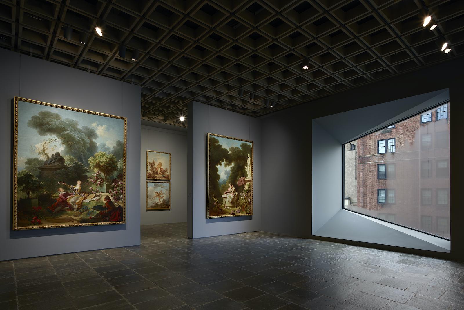 French eighteenth-century furniture and ceramics, including the stunning fall-front desk and commode made for Marie Antoinette by royal cabinetmaker Riesener—often overlooked in the mansion by those seeking nearby Vermeers—and a remarkable marble and gilt-bronze table by Gouthière—often missed in the residence by those drawn to the Frick’s signature Ingres portrait traditionally installed above it. At Frick Madison, displayed hovering above, but not on this furniture, are several of the museum’s most important examples of early Sèvres porcelain, including the recently acquired Vase Japon and a pair of candelabra by Gouthière.