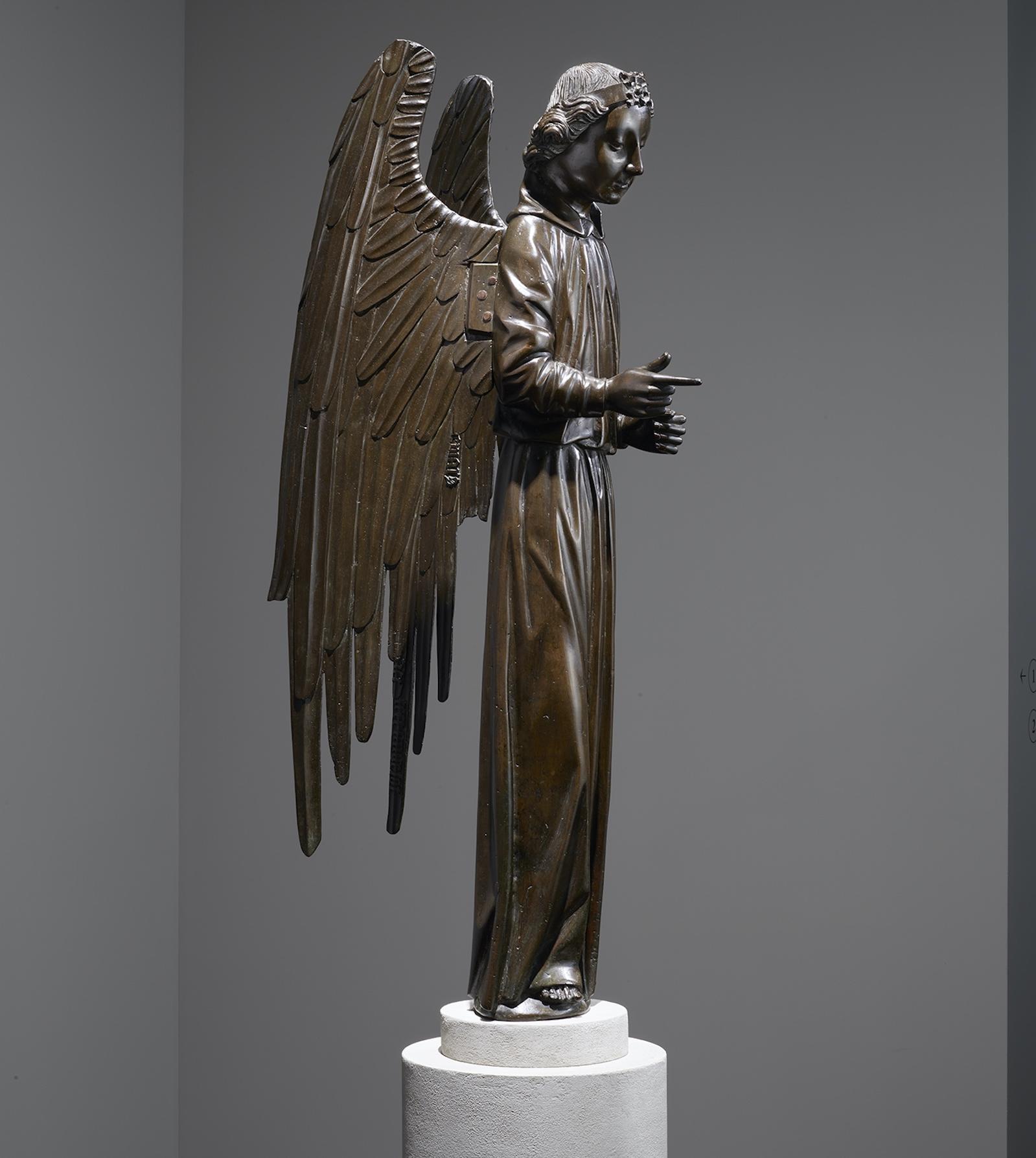 To highlight the importance of these works, the first object the visitor encounters on each floor of Frick Madison is a sculpture. On the second floor, which is dedicated to Northern European art, the Barbet Angel is given center stage in a room of its own. Often overlooked amidst the lush plantings of the Garden Court, the Angel is one of the Frick’s most prized works and possibly the only monumental fifteenth-century French bronze sculpture in existence, as most large French metalwork from that period was melted down during the French Revolution and the Napoleonic Wars. Cast by a cannon maker, the Barbet Angel stands atop a column, which invites visitors to move around it, to enjoy and appreciate the sculpture from all sides. Installed at Frick Madison, the Angel provides a bold new introduction to the collection, as well as a pronouncement on (and benchmark for) the importance of the institution’s sculptures.
