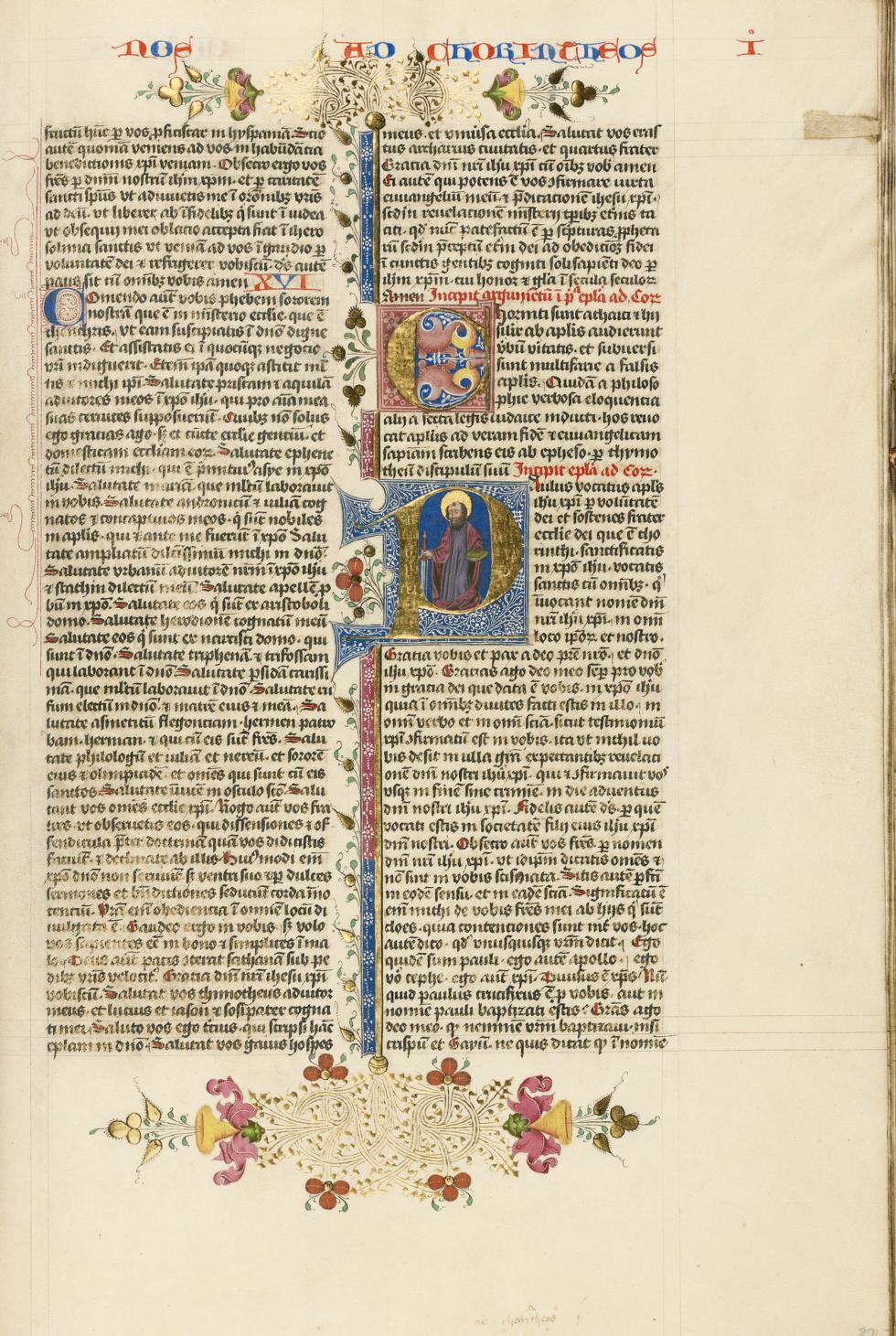 The Torah is the central sacred text of Judaism. In the strictest sense, the word refers to the Pentateuch, which contains the books of Moses: Genesis, Exodus, Leviticus, Numbers, and Deuteronomy. Illuminated copies of the Hebrew Bible in codex form, rather than Torah scrolls, began to appear in the mid-thirteenth century. In northern Europe, these manuscripts served the needs of members of the Ashkenazi Jewish community who had settled in the area along the Rhine River. Lavishly illustrated Hebrew manuscripts are exceedingly rare, since Jewish artisans were forbidden by law to join painting guilds. Hebrew manuscripts were often written by itinerant Jewish scribes and illuminated by local, sometimes Christian, artists. Illumination of the Hebrew Bible centers on the calligraphic forms of the letters, such as initials, word panels, or decorative frames around blocks of text.