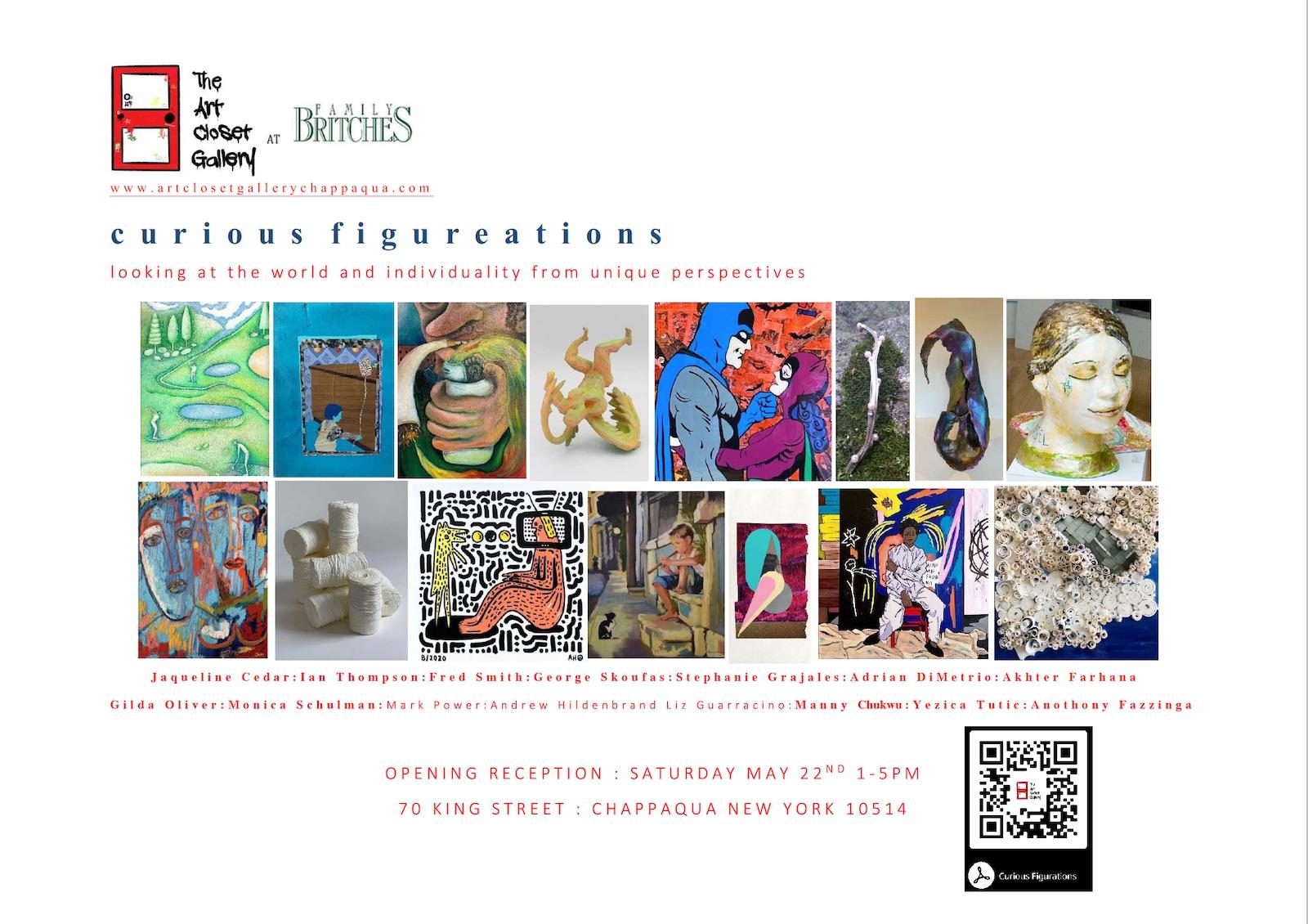 Invitation for Curious Figurations featuring Gilda Oliver at The Art Closet Gallery.