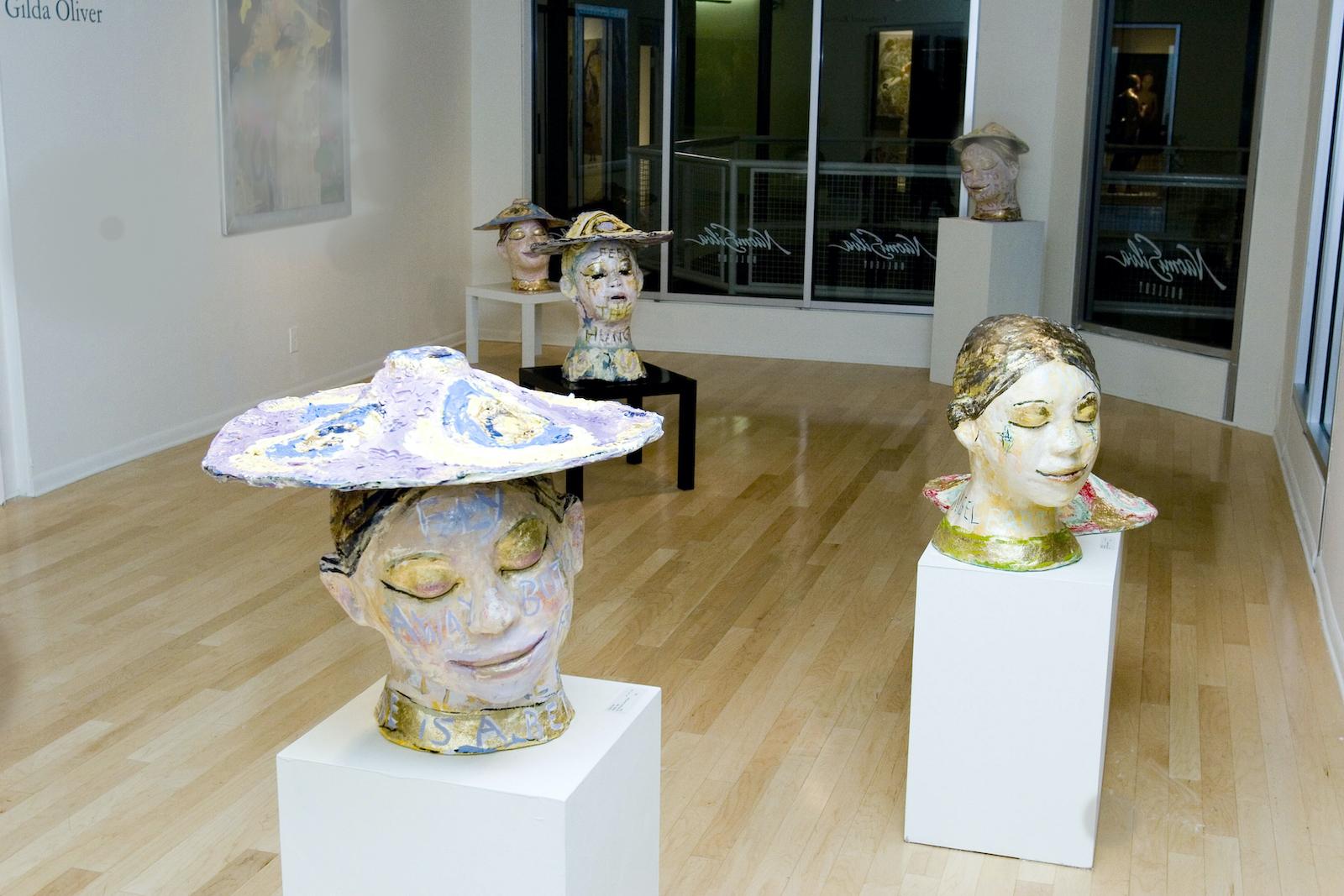 The Gilda Oliver artistic team, Marc and Gil Oliver are Baltimore-based painters, sculpture, and digital computer mixed media artists. Gil Oliver is a graduate of Alfred University & Cranbrook Academy of Art. Marc Oliver is a self-taught artist. They are internationally exhibited and recognized artists. With extensive experience of longstanding commitment to community & transformational art projects, the Olivers are showing—at the upcoming Curious Figurations group show, Art Closet Gallery, Chappaqua New York, opening May 21, 2021—oversized sculptures of heads that convey graceful images of Mother Earth imagined in a human form.