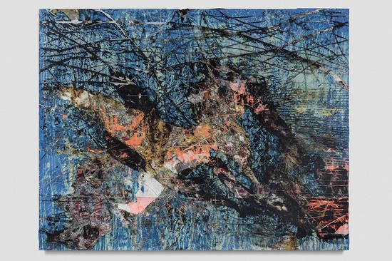 Mark Bradford, Bird of Paradise, 2018. Mixed media on canvas. 213.4 x 274.3 cm / 84 x 108 in