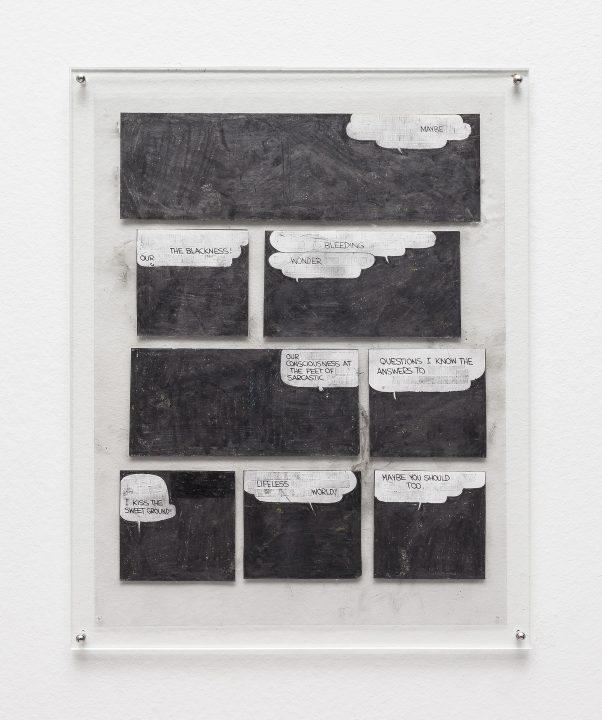 Tony Lewis, “Maybe,” 2016. Pencil, graphite powder, and correction fluid on paper and transparency.